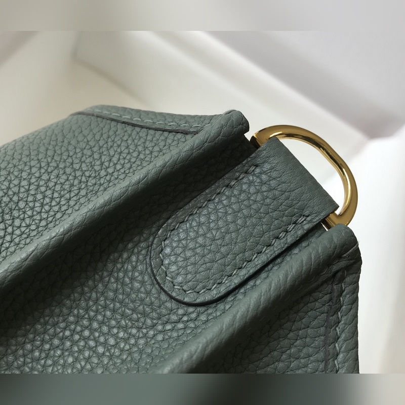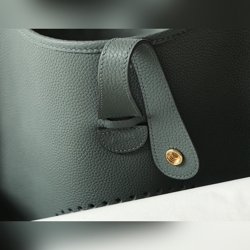 금 단추 달린 아몬드 그린 내구성과 아름다움을 겸비한 정말 완벽한 제품입니다. 배우 케이트 월시는 인터뷰에서 무거운 물건을 옮길 때 가장 먼저 선택하는 가방이 에블린 백이라고 말했습니다. 그녀는 오랫동안 에블린 백을 가지고 다니고 있지만 전혀 닳은 흔적이 없습니다. 이 인터뷰는 에르메스 가죽의 강인함과 내구성을 증명하는 완벽한 증거입니다. 반수제 재고 있음