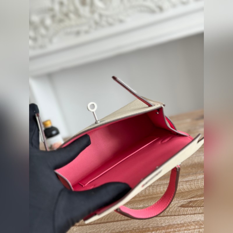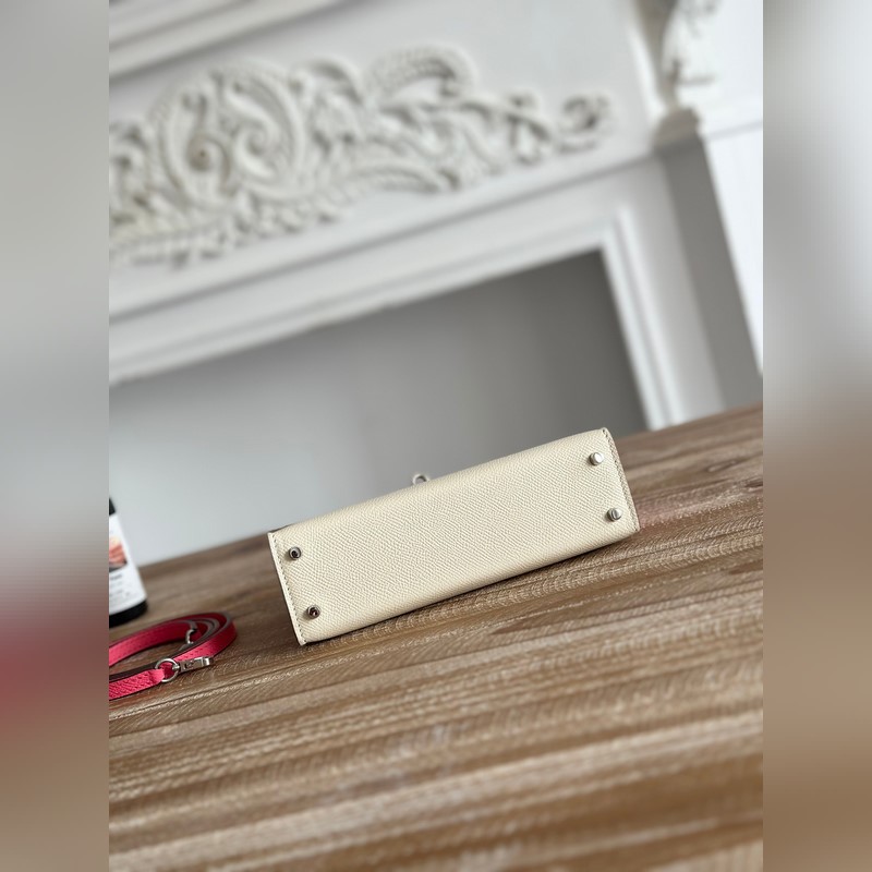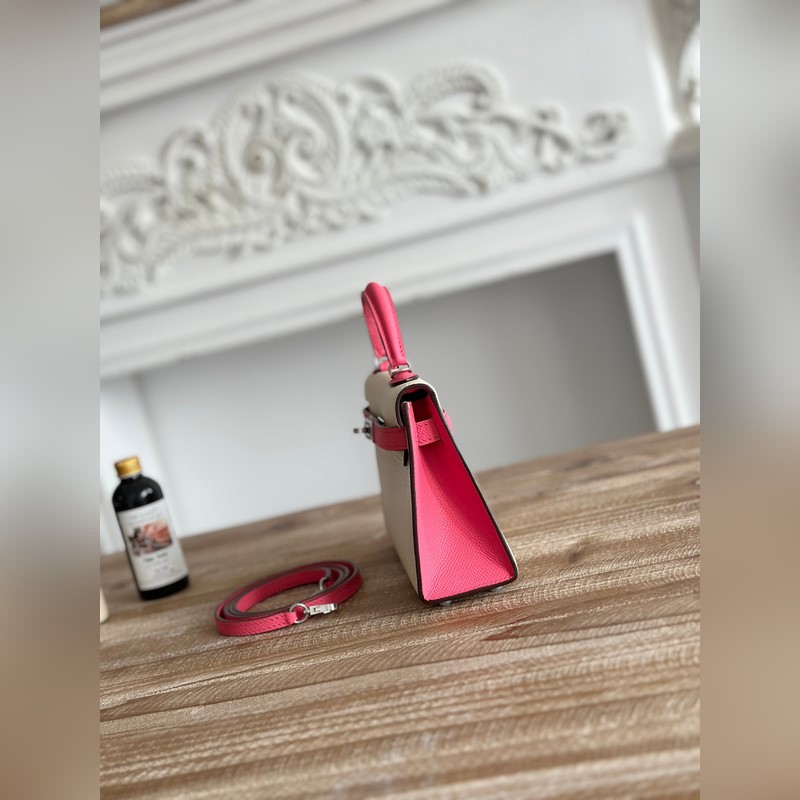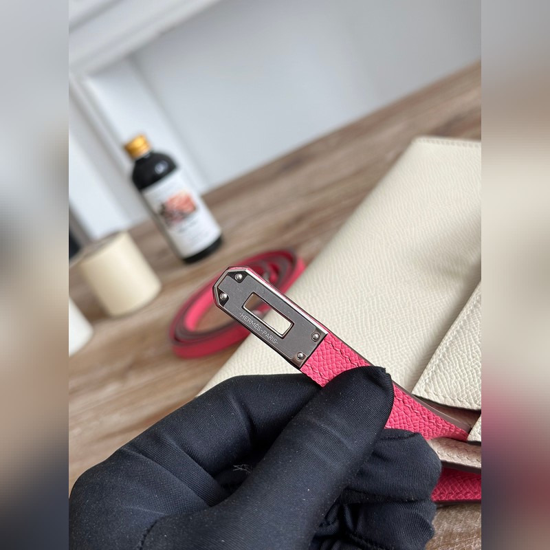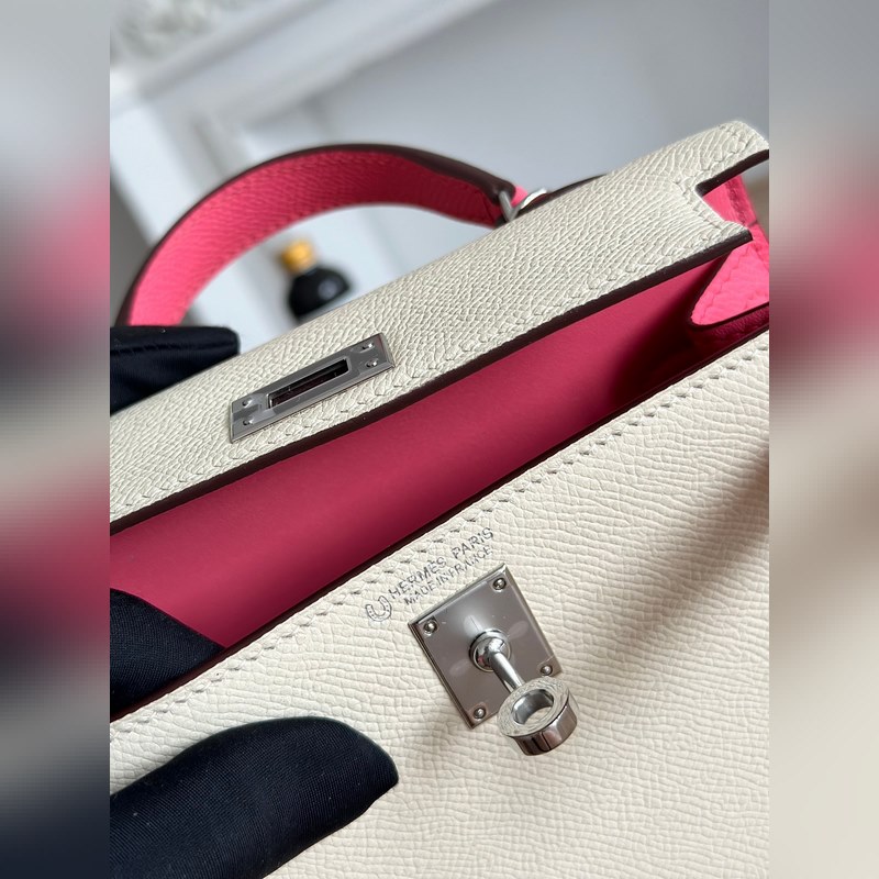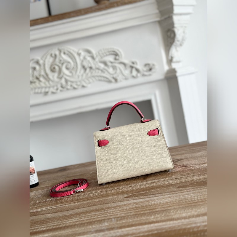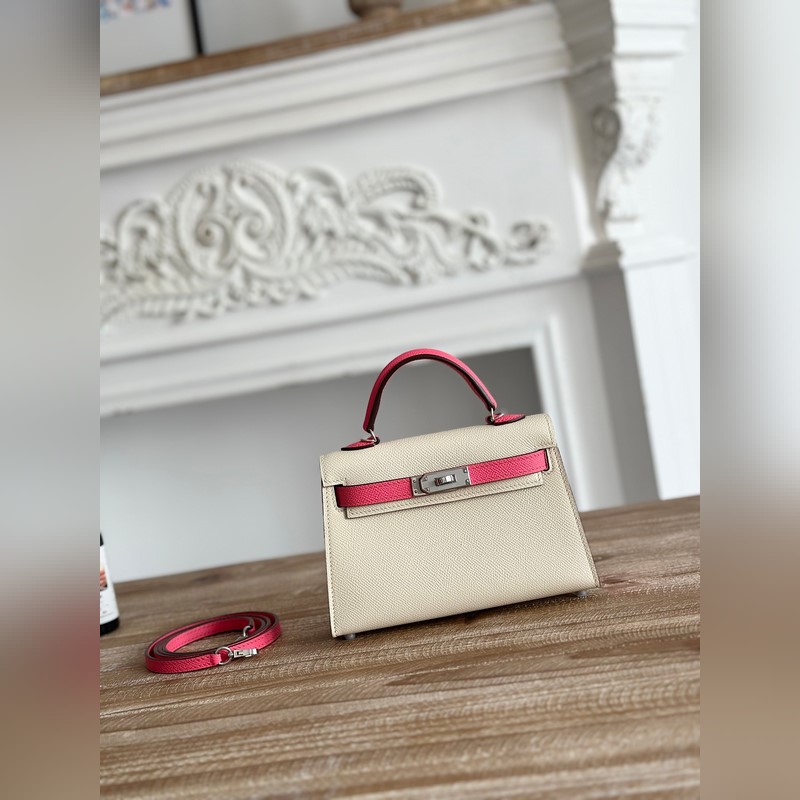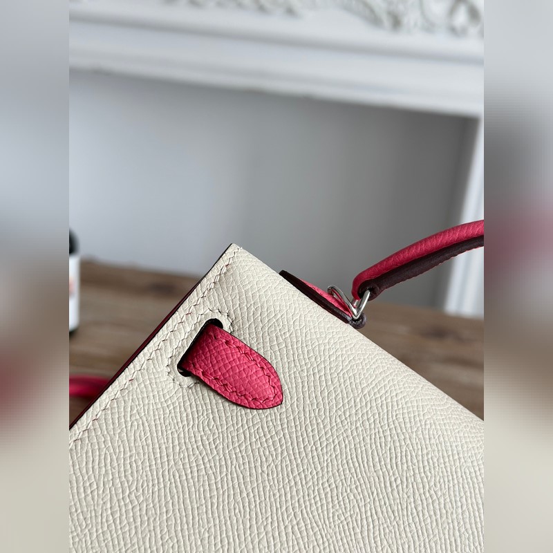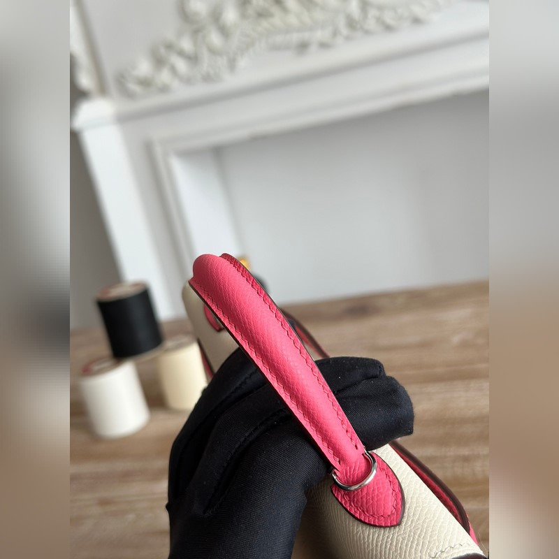 켈리 2 미니 색상: 밀크쉐이크 화이트/립스틱 핑크 수입된 에프솜 가죽 은색 버클 오토바이 + 반쯤 완성된 손바느질 왁스 실 크기: 19cm