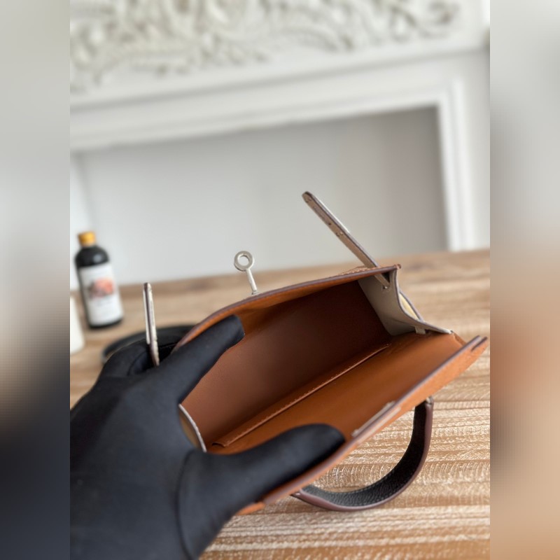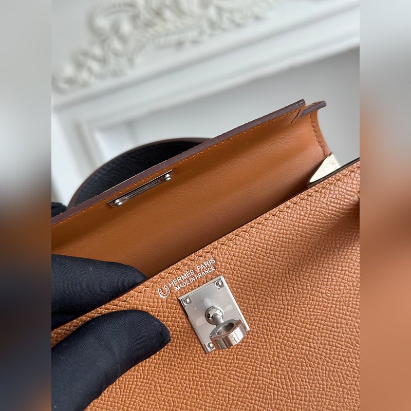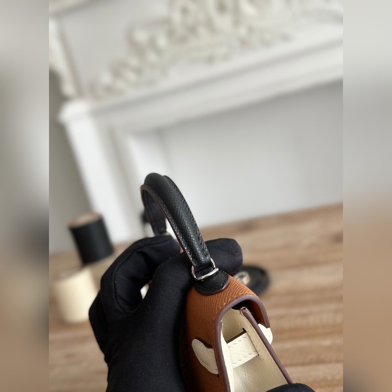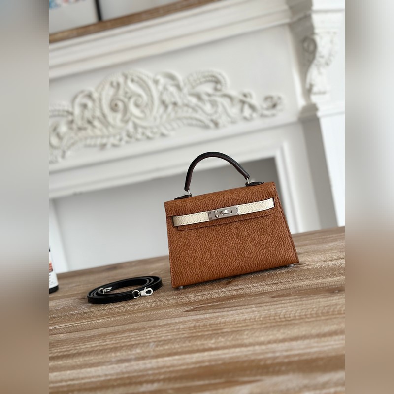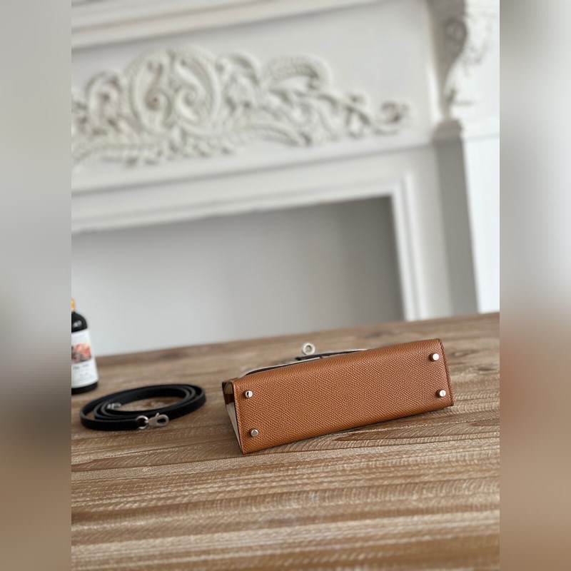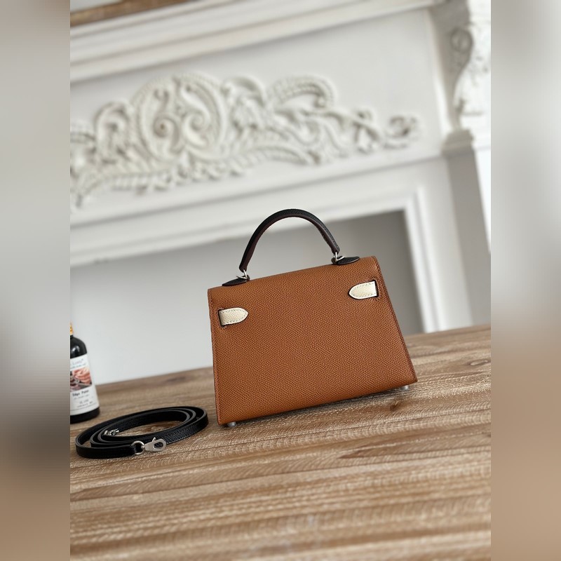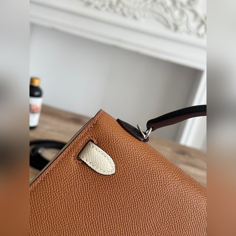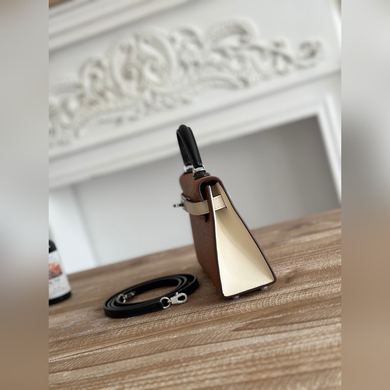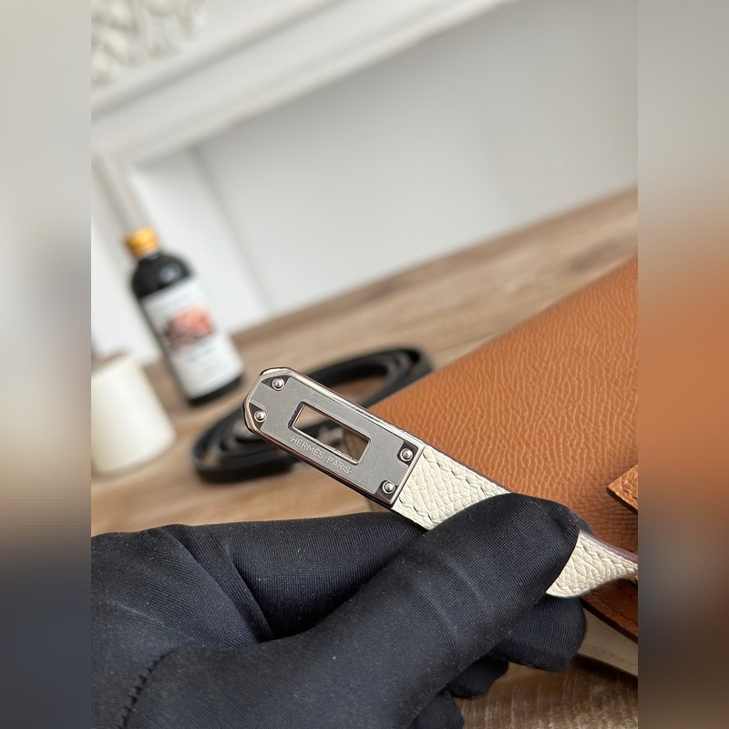켈리 2 미니 색상: 황금빛 갈색/밀크쉐이크 화이트/곡물 수입된 에프솜 가죽 은색 버클 오토바이 + 반쯤 완성된 손바느질 왁스 실 크기: 19cm