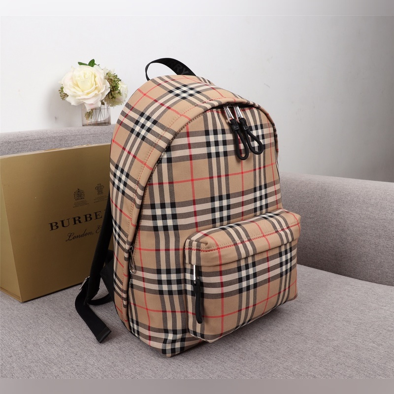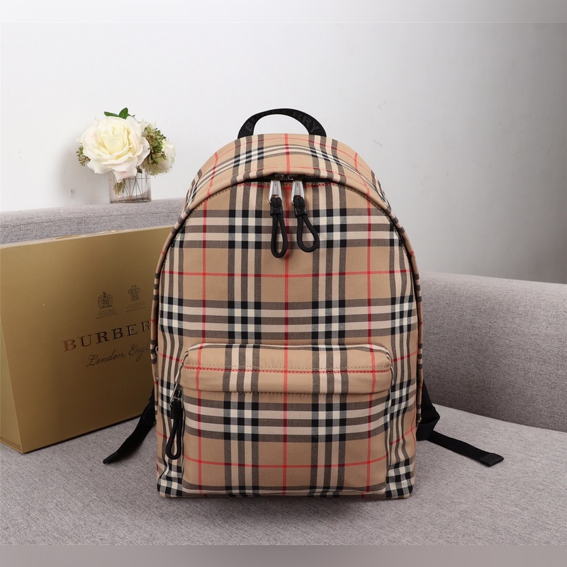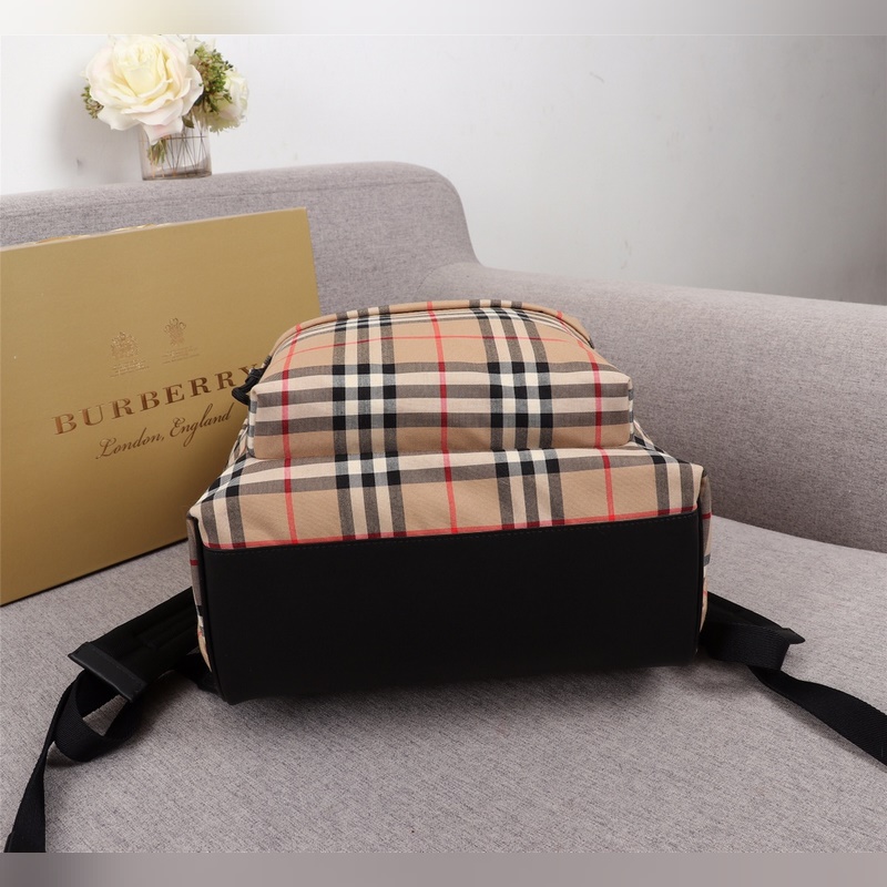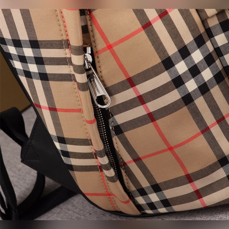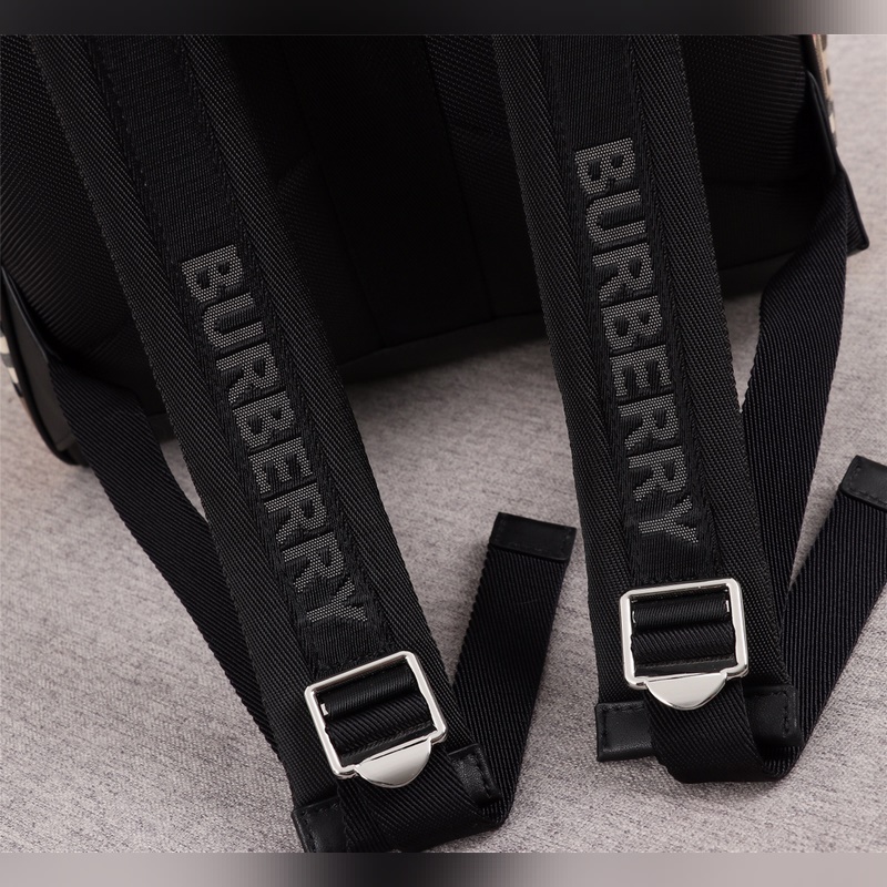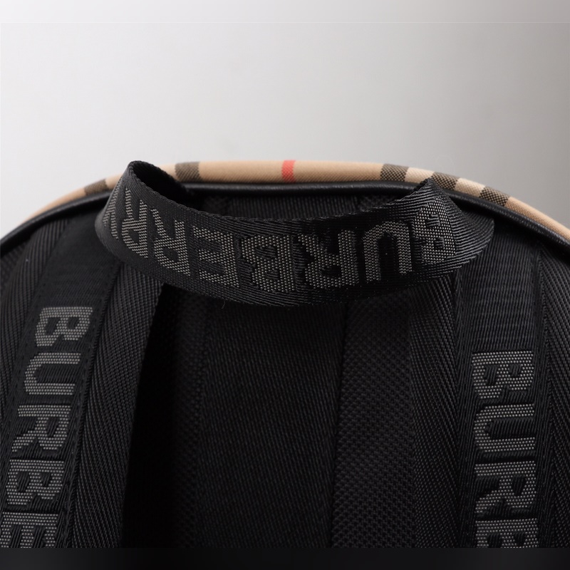 빈티지 체크 패턴 트림과 부드러운 가죽 트림이 있는 B-하우스 나일론 백팩 버버리 자카드 로고가 있는 어깨 스트랩. 모델: 1061! 크기: 30.5 x 14.5 x 42.5cm