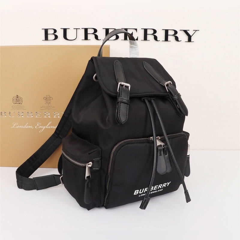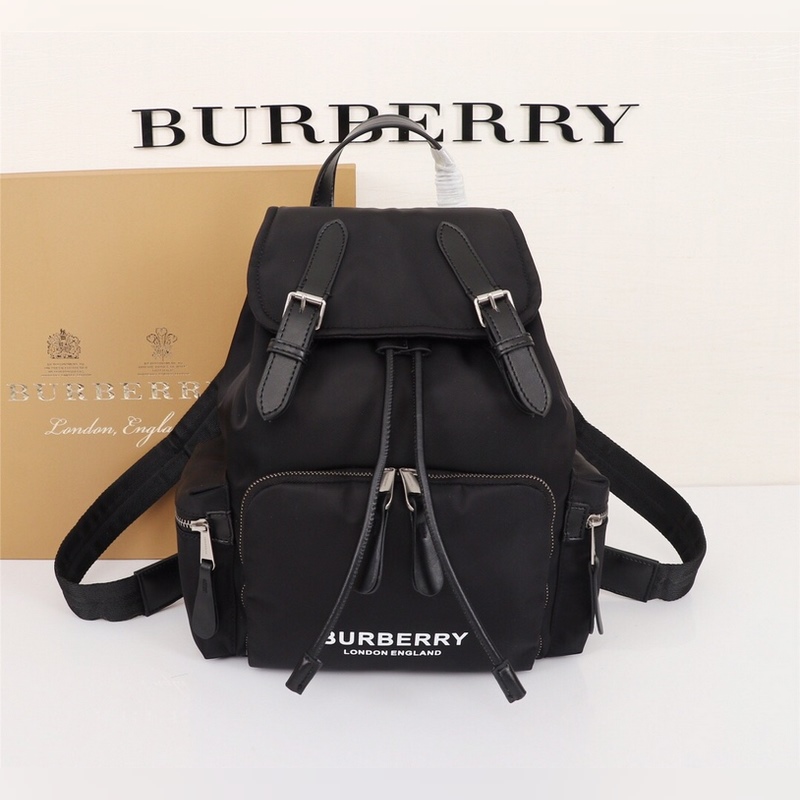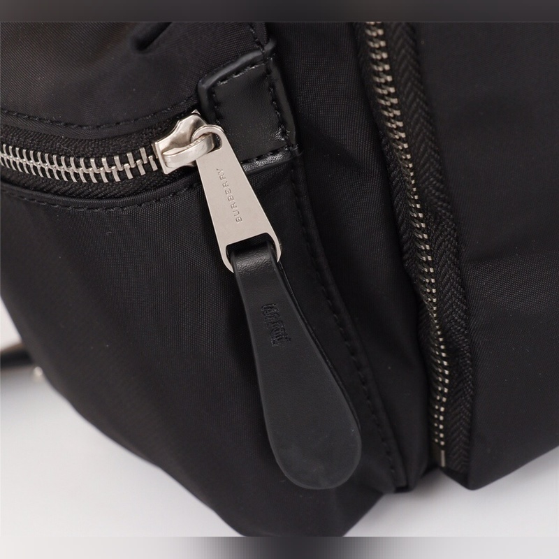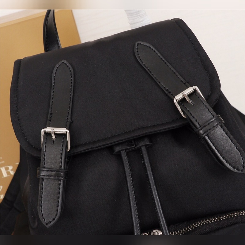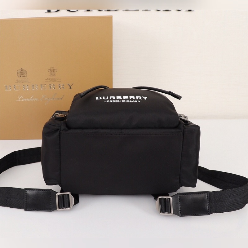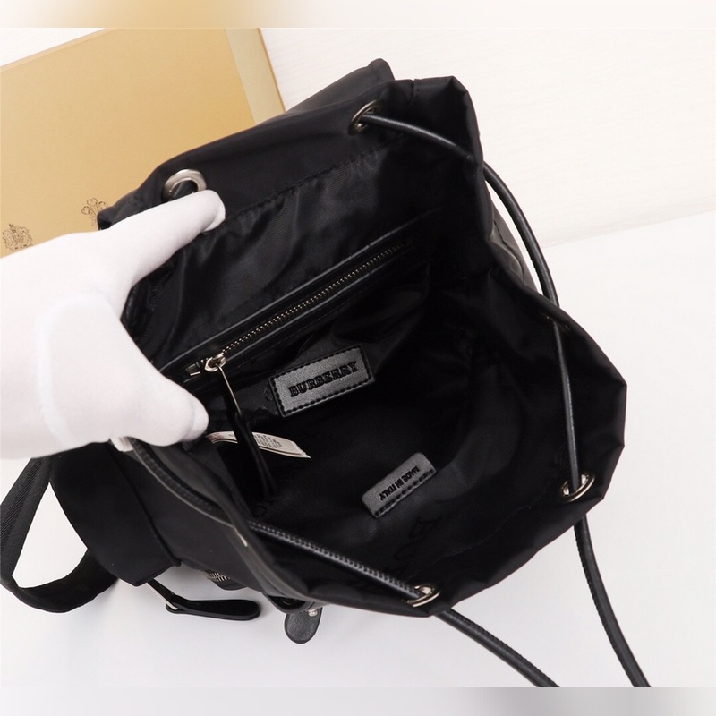 B 새로운 미디엄 마이크로 로고 백팩 클래식한 가죽 트림 밀리터리 백팩 한정판 방수 나일론 소재에 탑그레인 송아지 가죽과 가죽 손잡이 앞면에 버버리 레터링이 프린트된 마이크로 로고 장식! 내부 포켓 1개 지퍼식 내부 포켓 1개 크기 22x14x33cm 19216