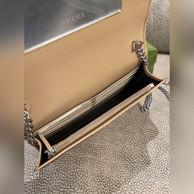 구찌의 최신 체인 백은 오리지널 공장 송아지 가죽으로 만들어졌으며 투톤
