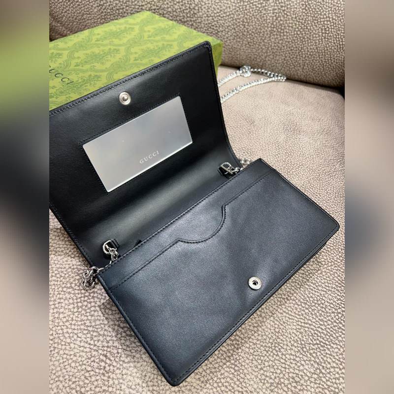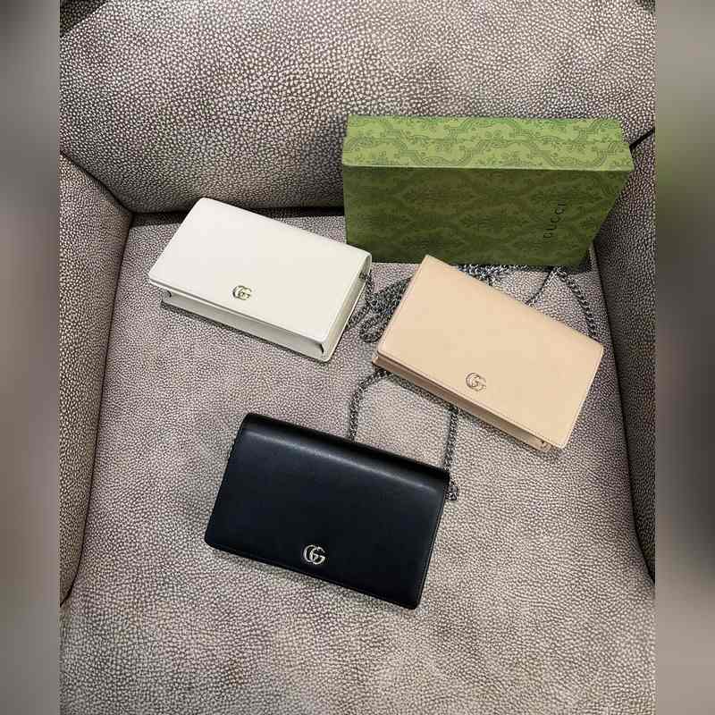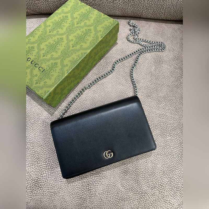 구찌의 최신 체인 백은 오리지널 공장 송아지 가죽으로 만들어졌으며 투톤