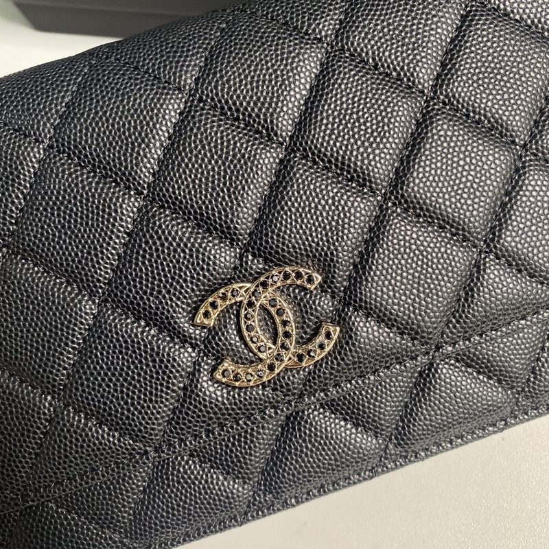 2025 신제품 woc 작은 향기 수입 이탈리아산 펠리클 송아지 가죽 상품 번호: AP3395 크기: 가로 20cm × 세로 13cm × 높이 3.5cm 색상: 검은색 가는 선에 다이아몬드와 밝은 금색