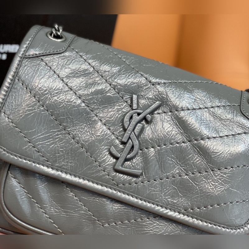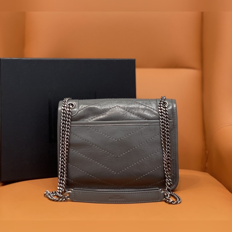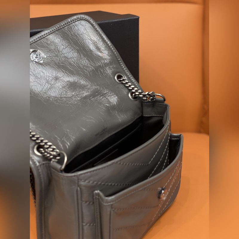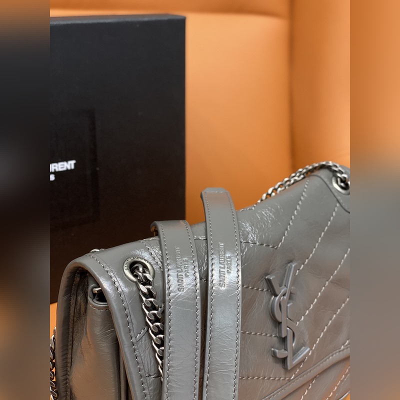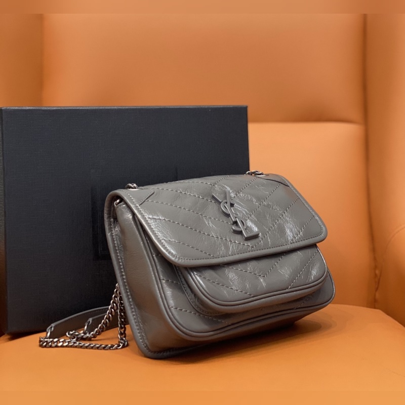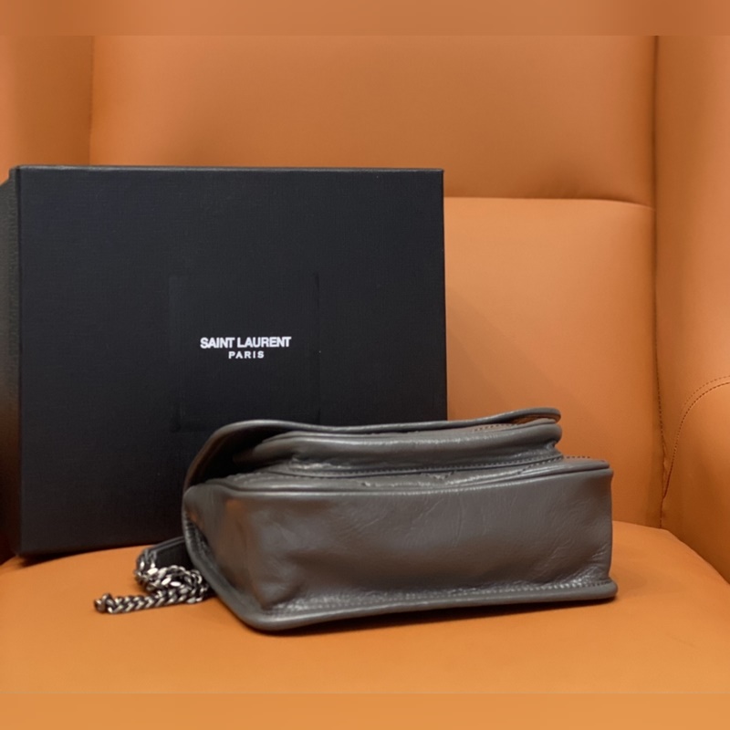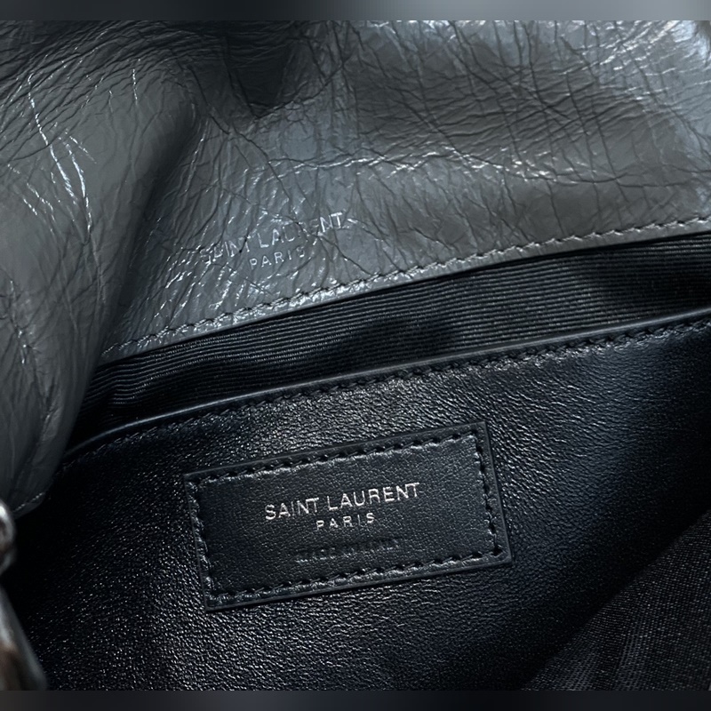 정품 YSL 카운터 최신 업그레이드 버전 533037D# [짙은 회색] 가죽으로 덮인 YSL 로고 브러시드 레트로 실버 하드웨어 한쪽 어깨에 대각선으로 메는 이중 사용 가죽 강화 숄더 스트랩 체인 그로그랭 안감 자석 스냅 버튼 잠금 내부: 메인 수납공간 1개 오픈 포켓 1개 지퍼 포켓 1개 플랩 다운 포켓 1개 외부: 자석 백 포켓 1개 크기: 22 x 16 x 7.5cm [모두 선물 상자 포함]