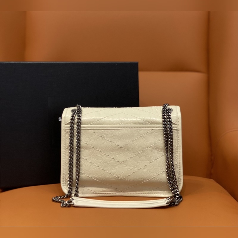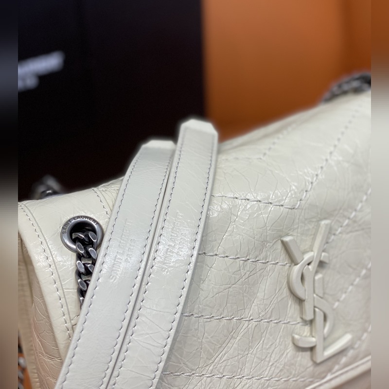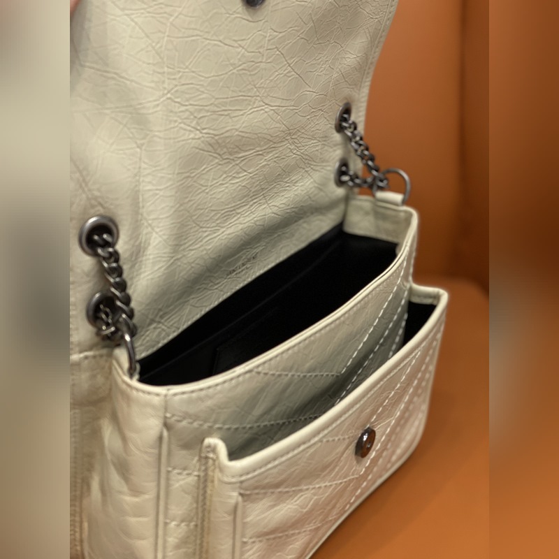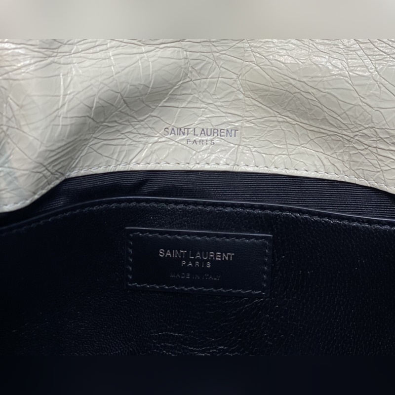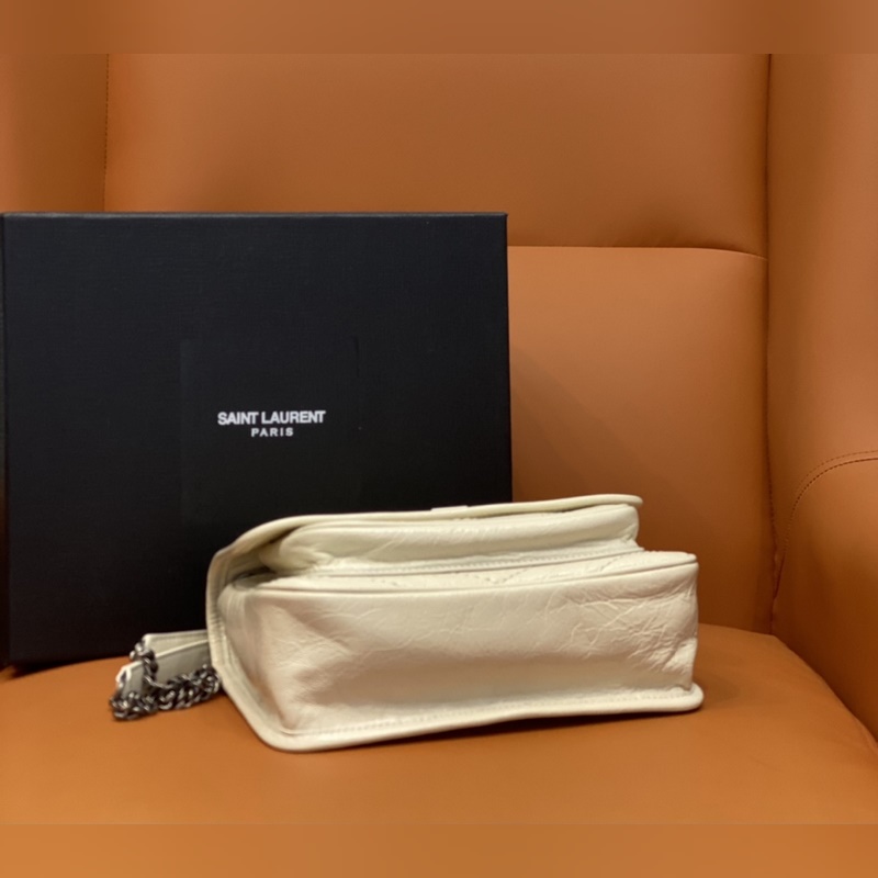 정품 YSL 카운터 최신 업그레이드 버전 533037D# [흰색] YSL 로고가 새겨진 정품 가죽 브러시드 처리된 레트로 실버 하드웨어 크로스 바디로 착용할 수 있는 강화 가죽 숄더 패드가 있는 숄더 스트랩 그로그랭 안감 자석 스냅 버튼 잠금장치로 장식되어 있습니다. 내부: 메인 수납공간 1개 오픈 포켓 1개 지퍼 포켓 1개 플랩 포켓 1개. 외부: 자석 백 포켓 1개. 크기: 22 x 16 x 7.5cm [모두 선물 상자 포함]