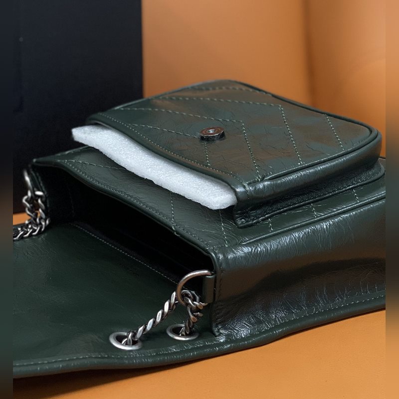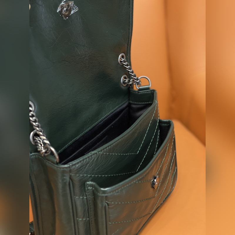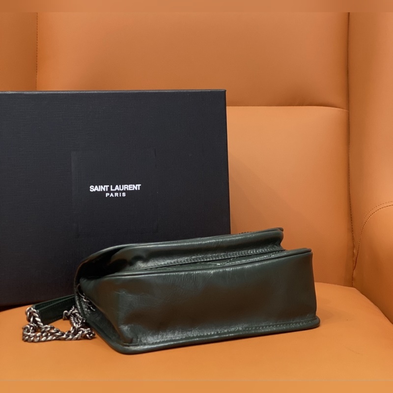 정품 YSL 카운터 최신 업그레이드 버전 533037D# [에메랄드] YSL 로고로 장식된 정품 가죽 소재 브러시드 빈티지 실버 하드웨어 크로스 바디 또는 어깨에 메는 숄더 스트랩 강화 가죽 숄더 스트랩 그로그랭 안감 마그네틱 스냅 버튼 잠금장치 내부: 메인 수납공간 1개 오픈 포켓 1개 지퍼 포켓 1개 플랩 포켓 1개 외부: 마그네틱 백 포켓 1개 크기: 22 x 16 x 7.5cm [모두 선물 상자 포함]