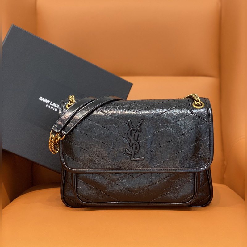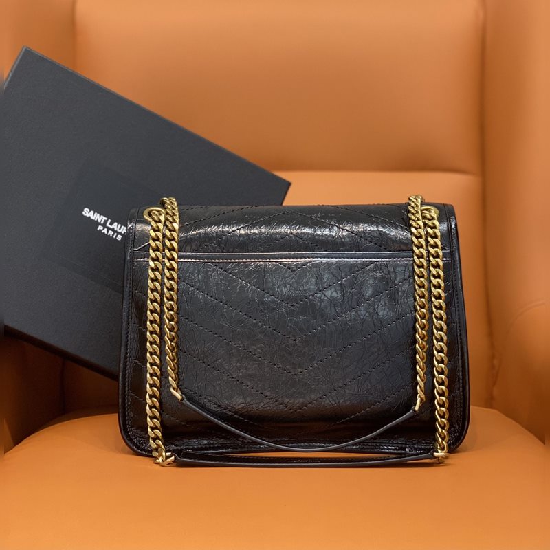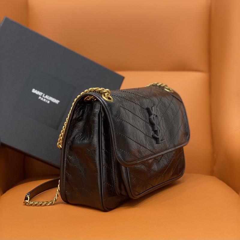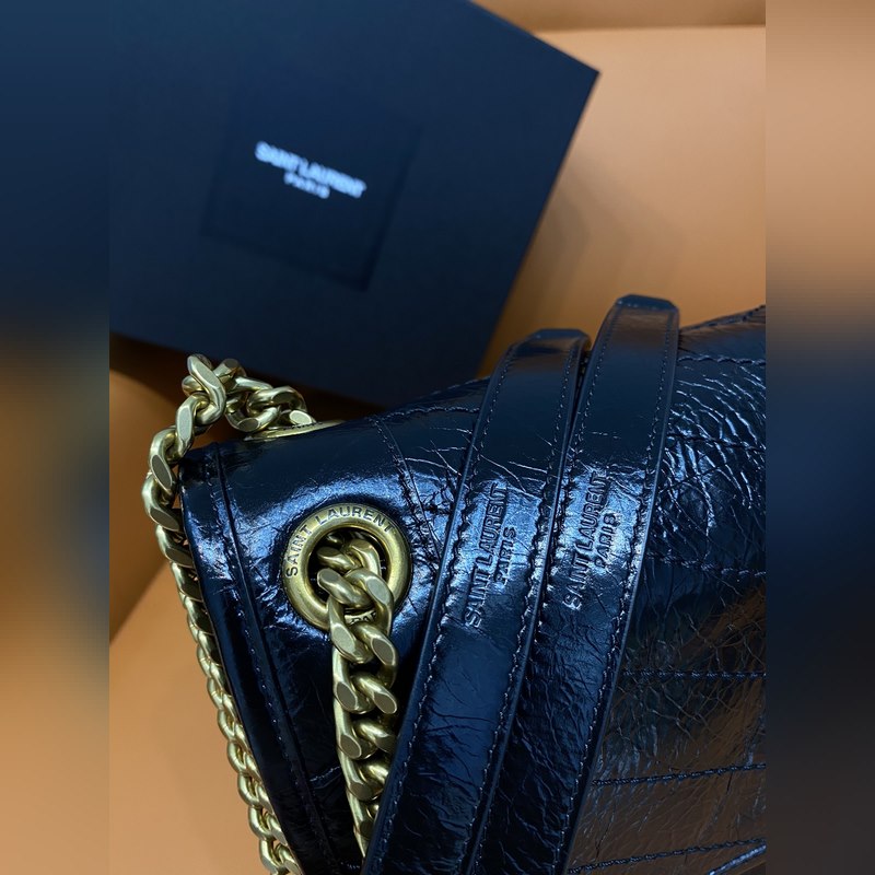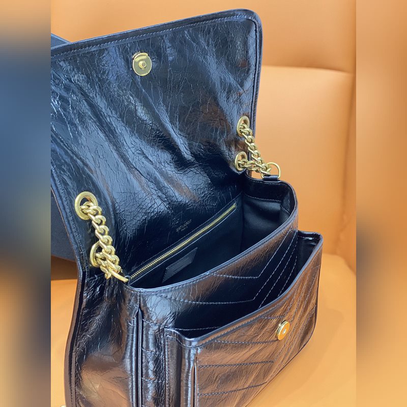 정품 YSL 카운터 최신 업그레이드 버전 498894D# [검정] 정품 가죽으로 덮인 YSL 로고 장식 브러시드 빈티지 실버 하드웨어 가죽으로 보강된 어깨 스트랩 체인으로 한쪽 어깨에 대각선으로 메거나 몸에 걸칠 수 있음 그로그랭 안감 자석 스냅 버튼 잠금 내부: 메인 수납공간 1개 오픈 포켓 1개 지퍼 포켓 1개 플랩형 하단 포켓 1개 외부: 자석 백 포켓 1개 크기: 28 x 20 x 8.5cm [모두 선물 상자 포함]