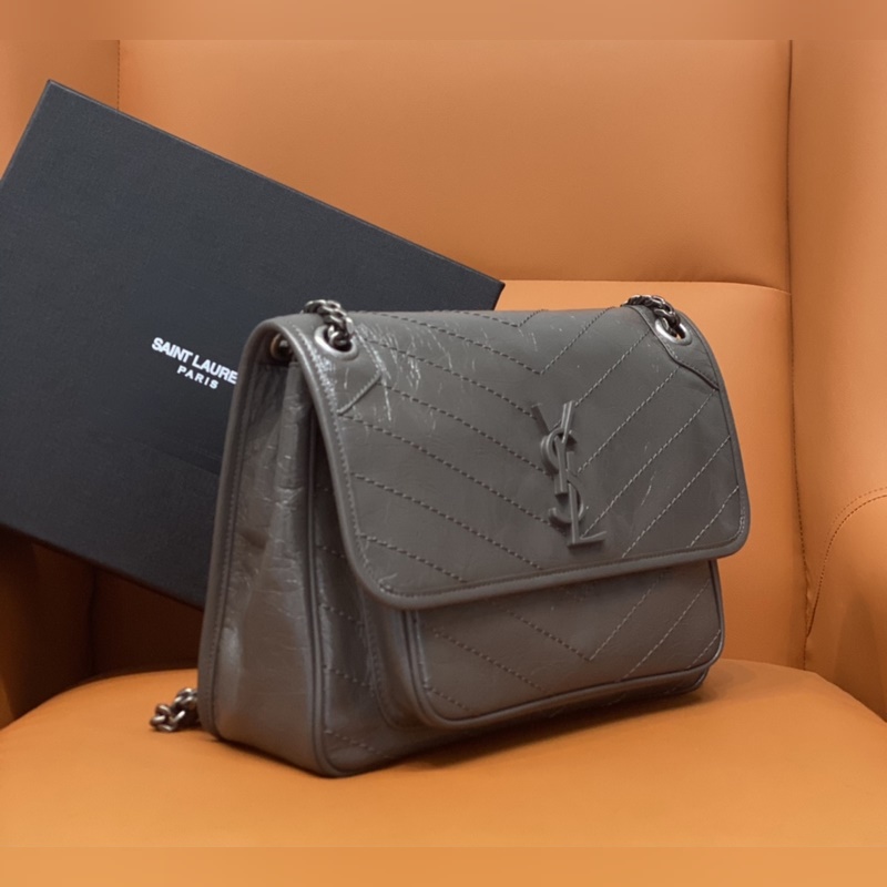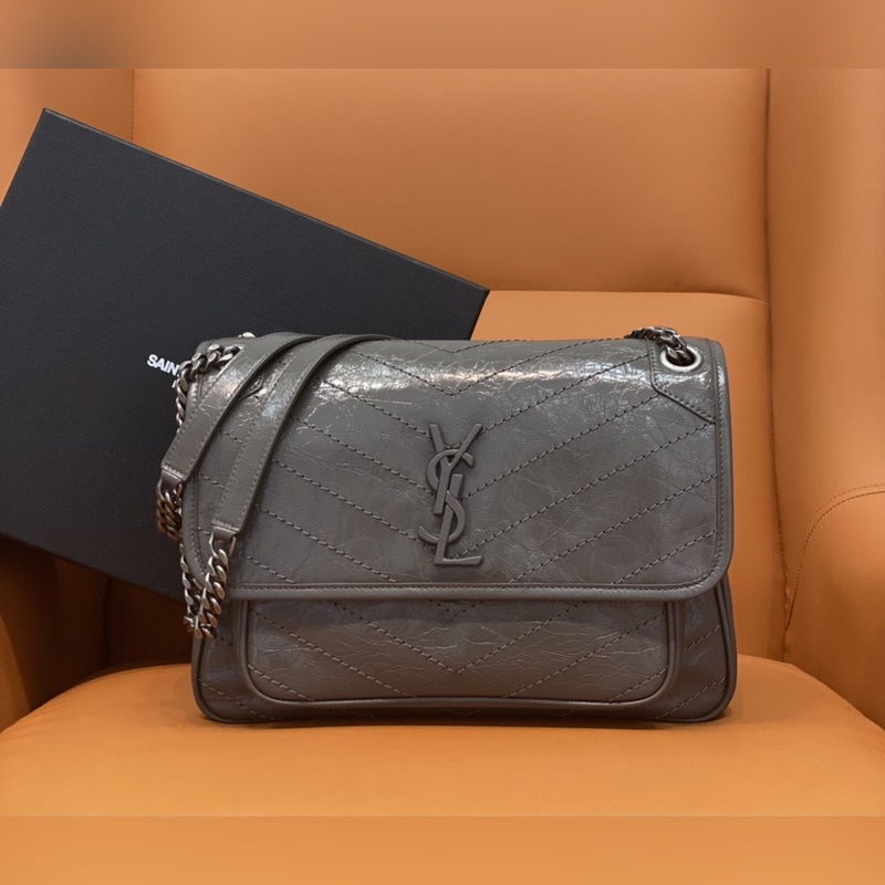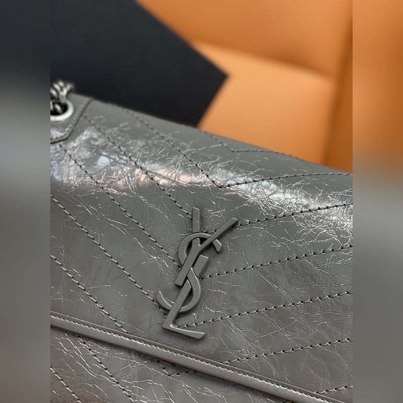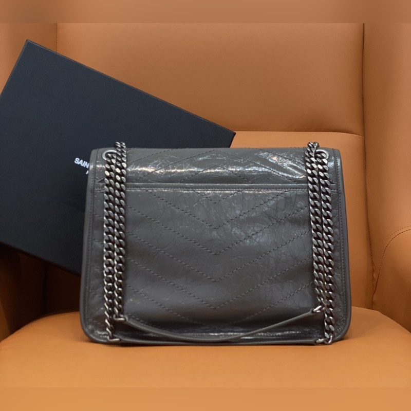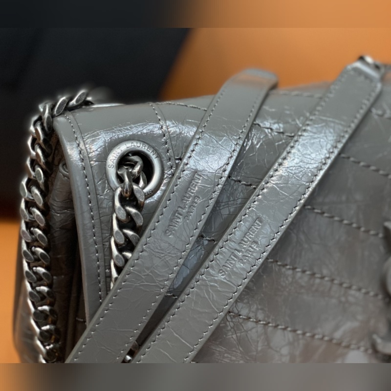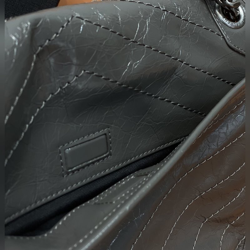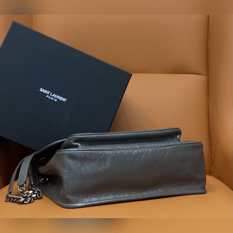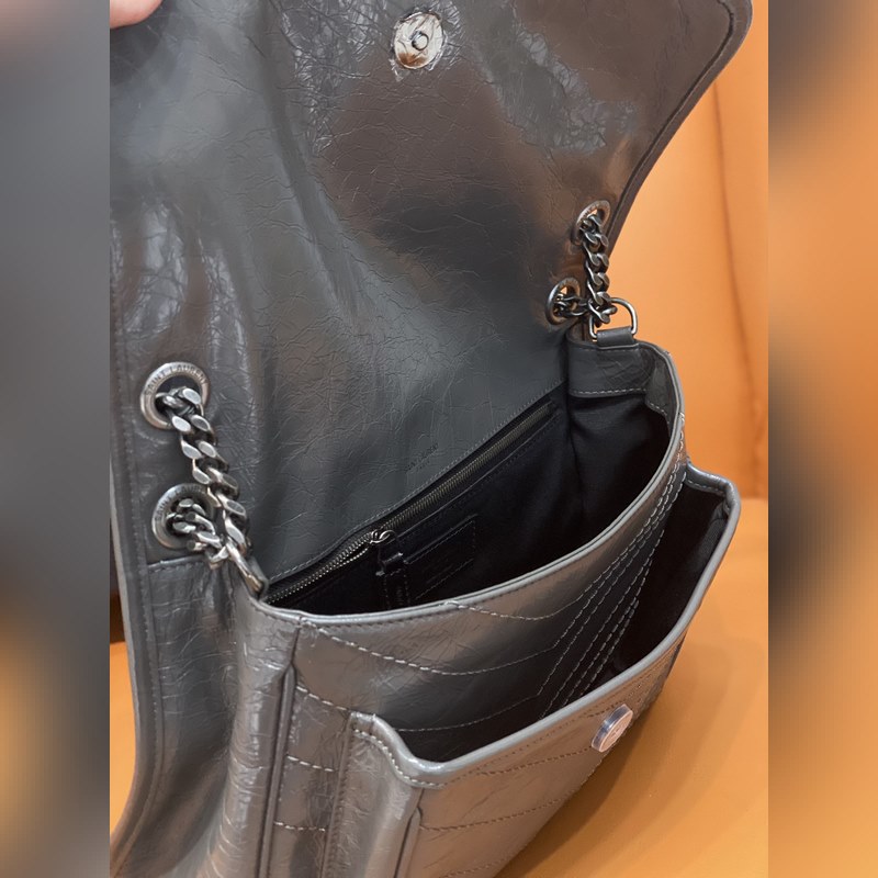 정품 YSL 카운터 최신 업그레이드 버전 498894D# [짙은 회색] 가죽으로 덮인 YSL 로고 브러시드 레트로 실버 하드웨어 한쪽 어깨에 대각선으로 메는 이중 사용 가죽 강화 어깨끈 그로그랭 안감 마그네틱 스냅 버튼 잠금 내부: 메인 수납공간 1개 오픈 포켓 1개 지퍼 포켓 1개 플랩 다운 포켓 1개 외부: 마그네틱 백 포켓 1개 크기: 28 x 20 x 8.5cm [모두 선물 상자 포함]