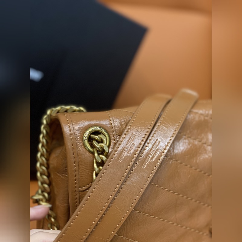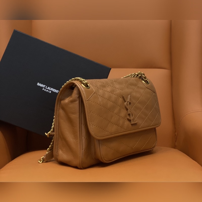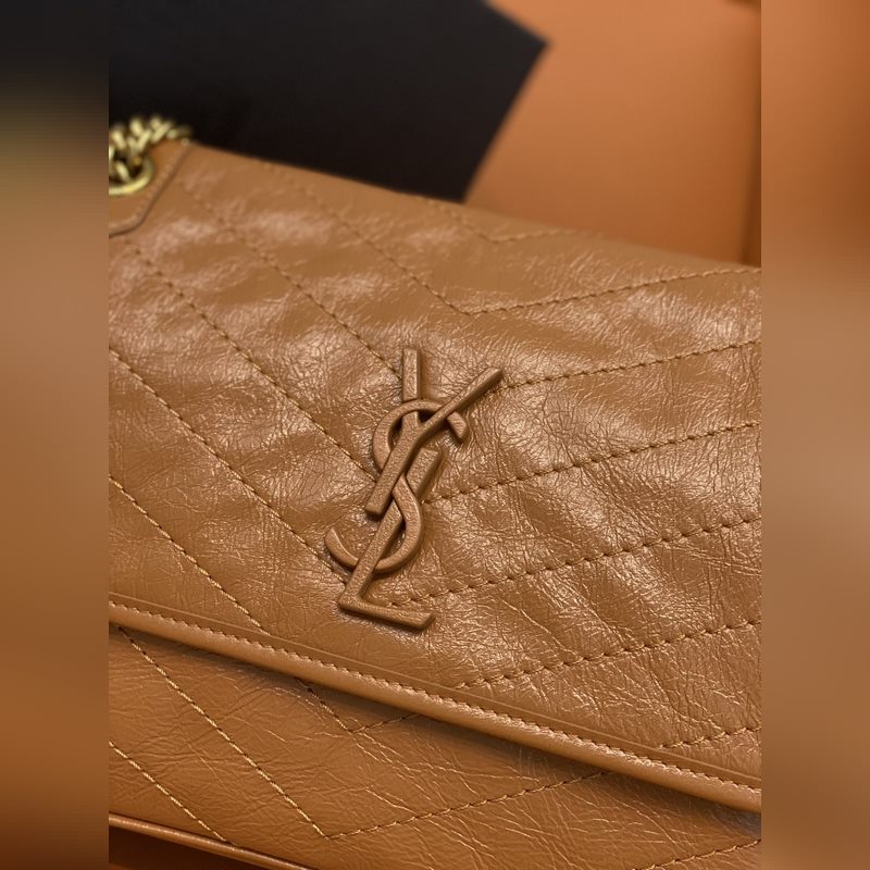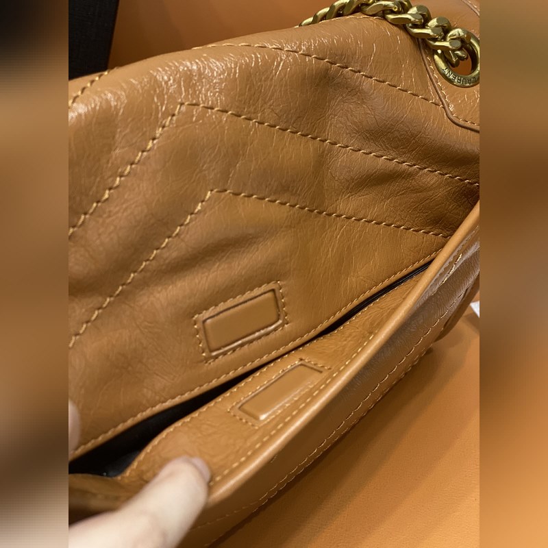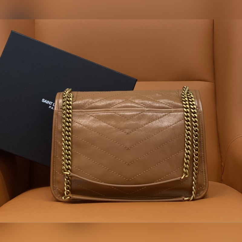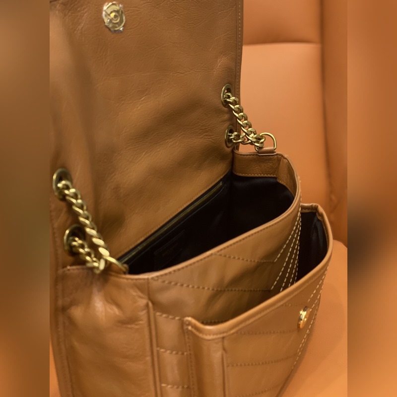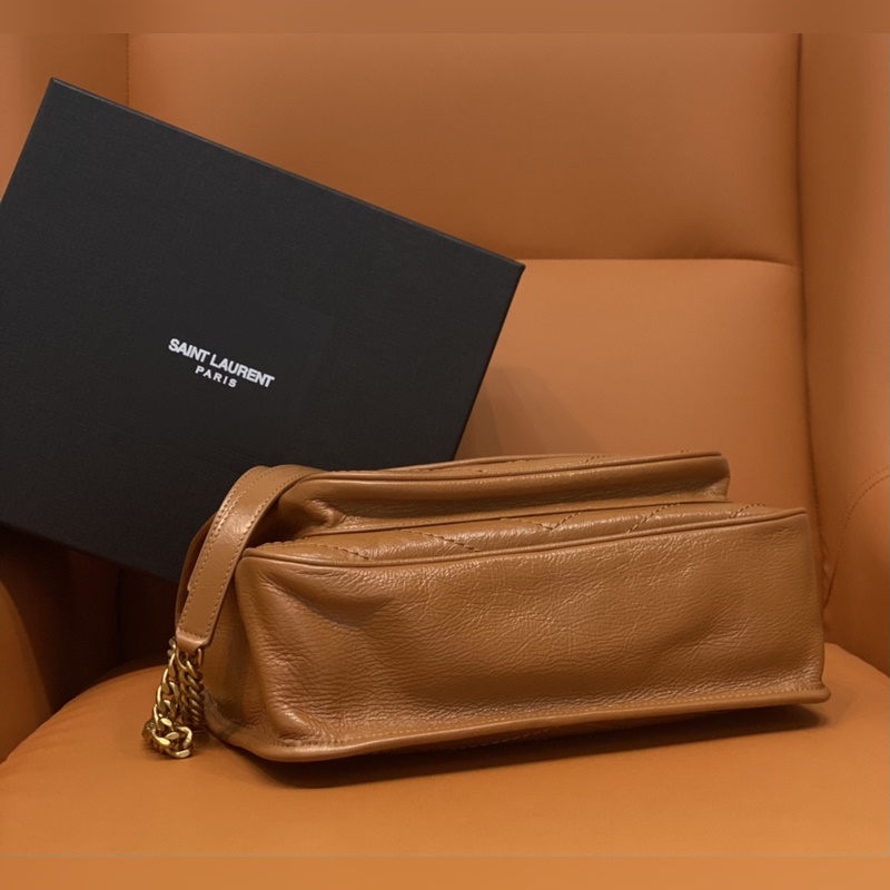 정품 YSL 카운터 최신 업그레이드 버전 498894D# [갈색] 가죽으로 덮인 YSL 로고 브러시드 빈티지 실버 하드웨어 어깨에 대각선으로 착용할 수 있는 이중 사용 가죽 강화 어깨 스트랩 그로그랭 안감 자석 스냅 잠금 내부: 메인 수납공간 1개 오픈 포켓 1개 지퍼 포켓 1개 플랩 다운 포켓 1개 외부: 자석 백 포켓 1개 크기: 28 x 20 x 8.5cm [모두 선물 상자 포함]