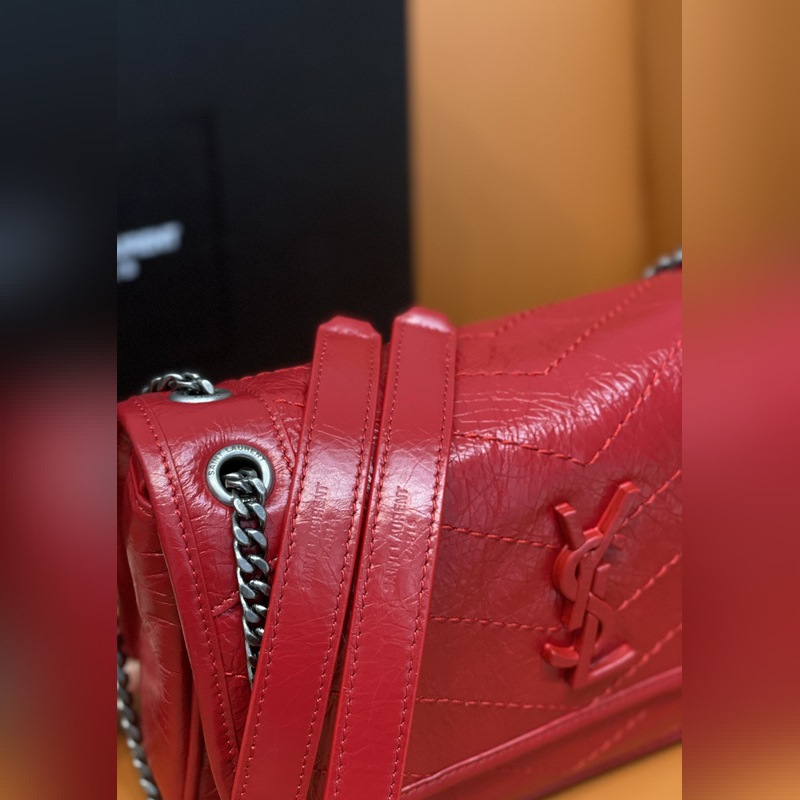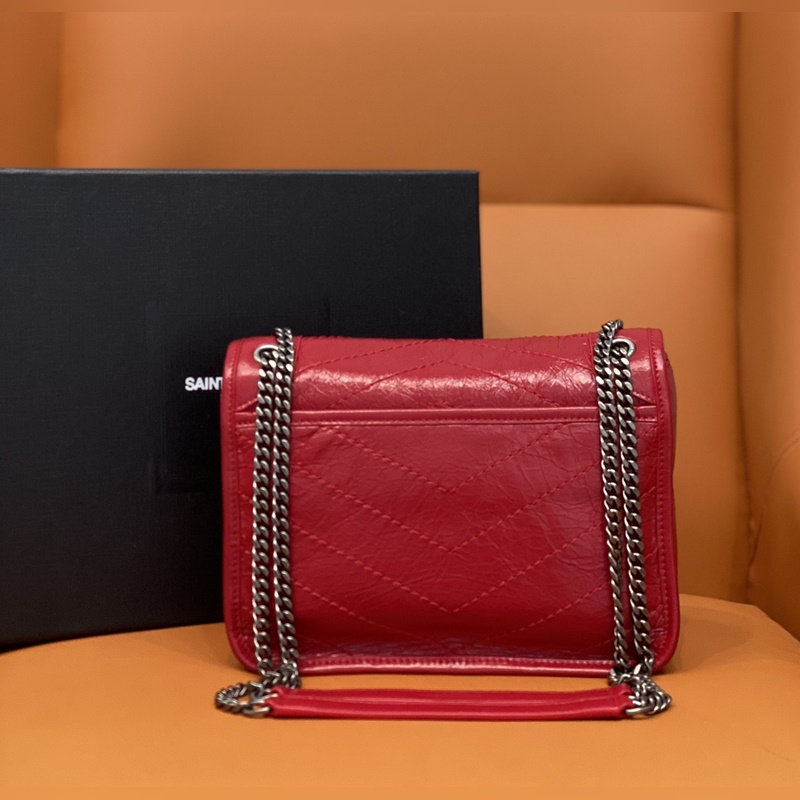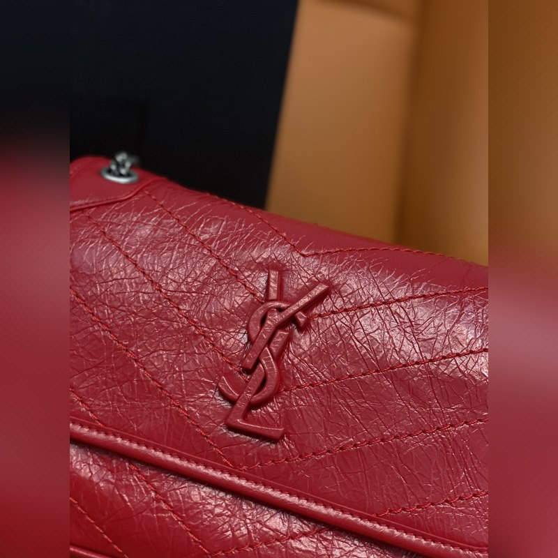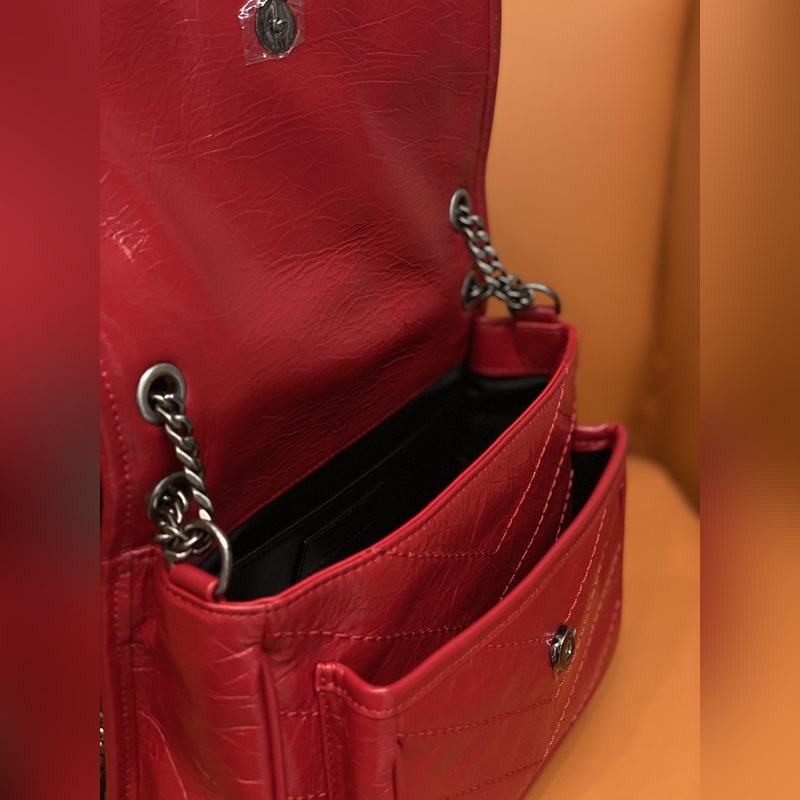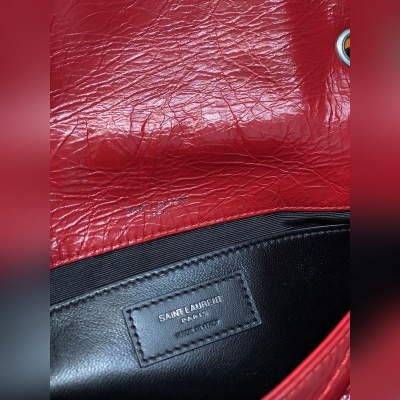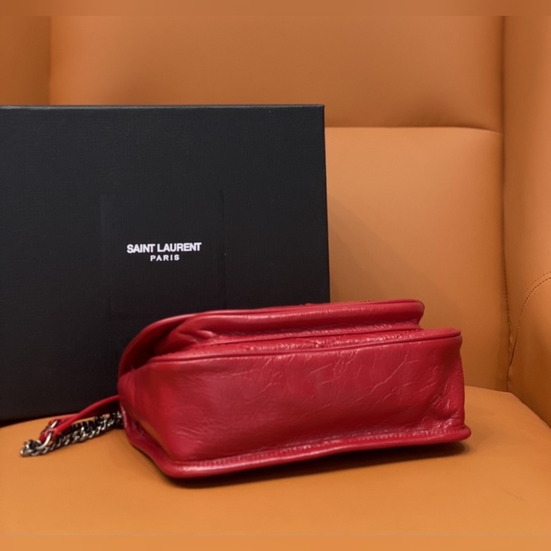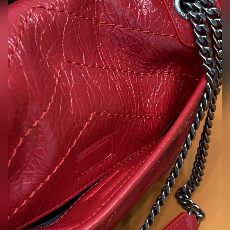정품 YSL 카운터 최신 업그레이드 버전 533037D# [진홍색] 가죽으로 덮인 YSL 로고 브러시드 레트로 실버 하드웨어 강화된 어깨 패드가 있는 이중 사용 가죽 어깨 스트랩 그로그랭 안감 자석 스냅 잠금 내부: 메인 수납공간 1개 오픈 포켓 1개 지퍼 포켓 1개 플랩 포켓 1개 외부: 자석 백 포켓 1개 크기: 22 x 16 x 7.5cm [모두 선물 상자 포함]