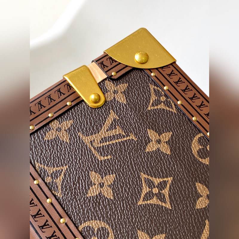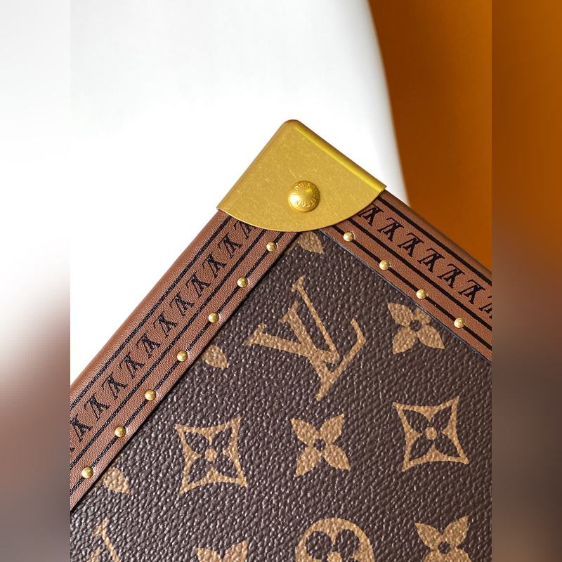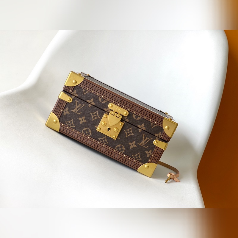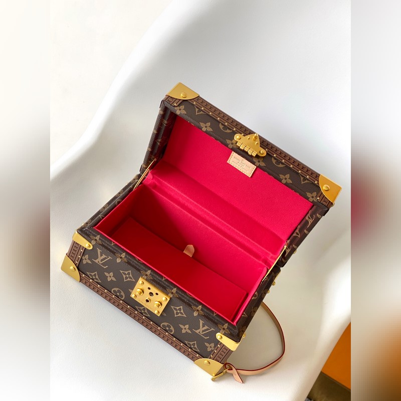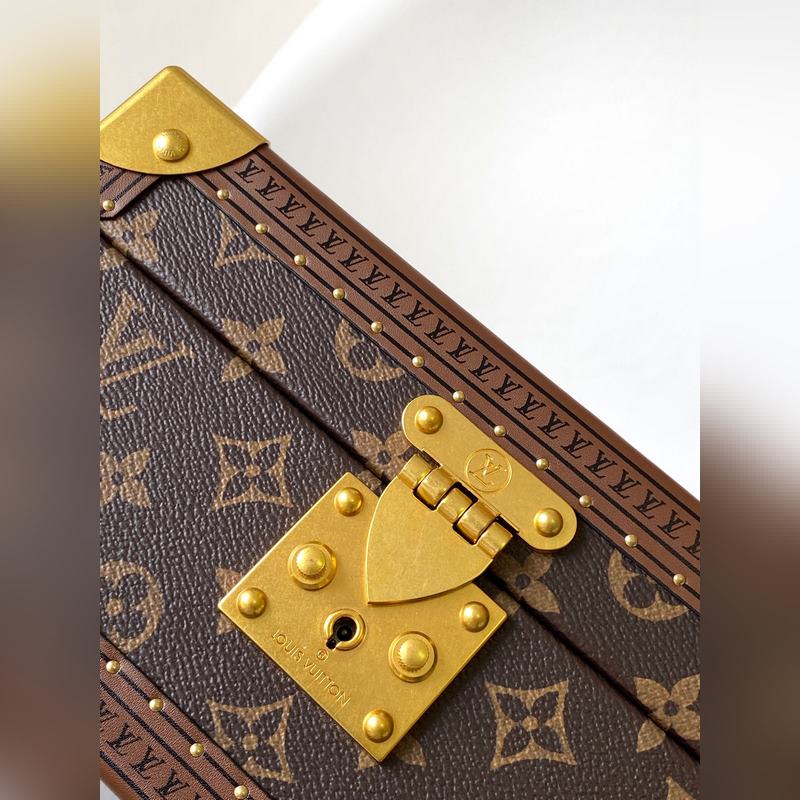 M24572 최고급 오리지널 Coffret Tr?sor 24 하드 케이스 새로운 모노그램 데님 캔버스와 소가죽 트리밍. 중형 사이즈로 귀중한 컬렉션을 안전하게 보관할 수 있습니다. 25.0 x 13.5 x 17.5cm(길이 x 높이 x 너비) S자형 자물쇠(열쇠 포함) 메인 수납칸 금속 모서리 프린트된 캔버스 테두리 스터드로 보강