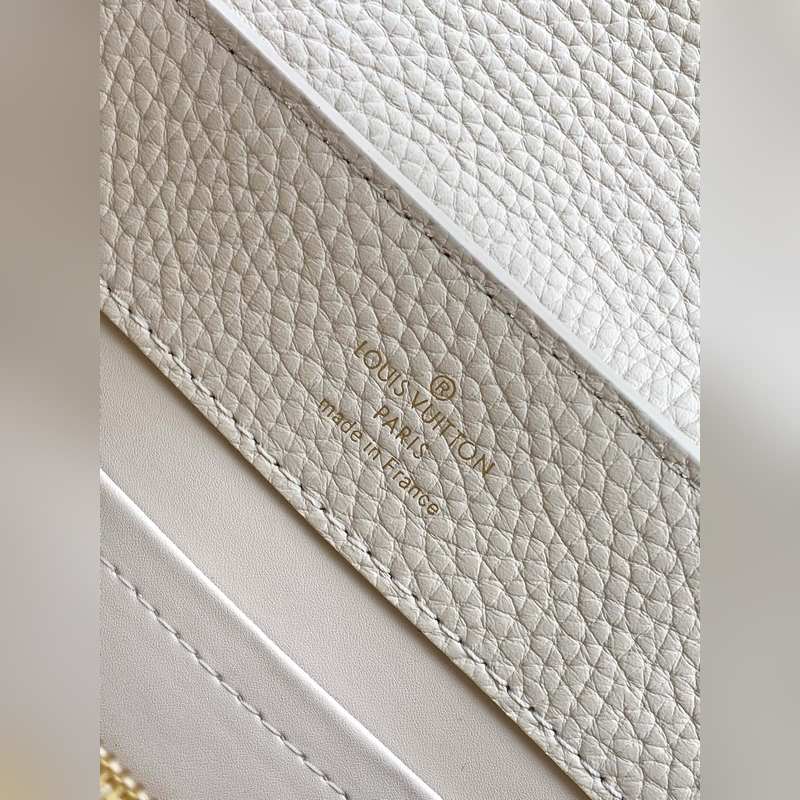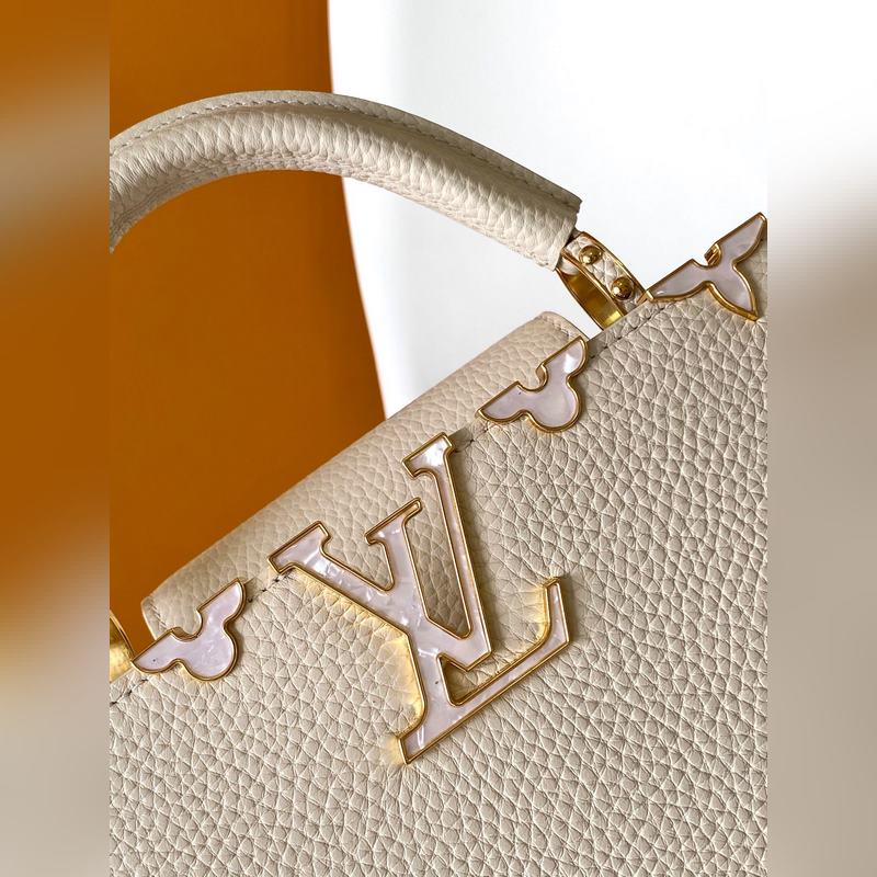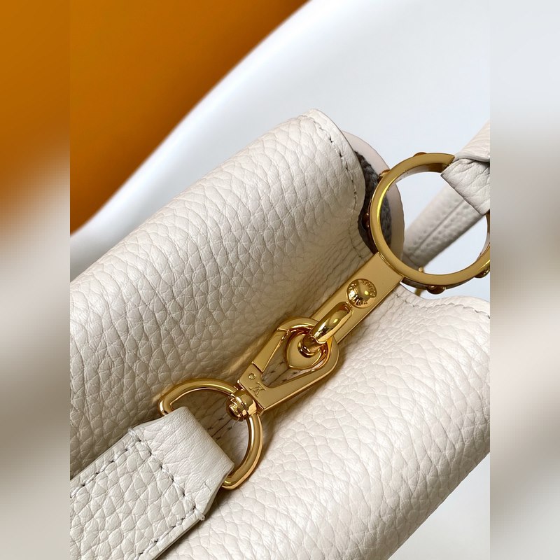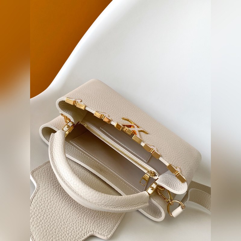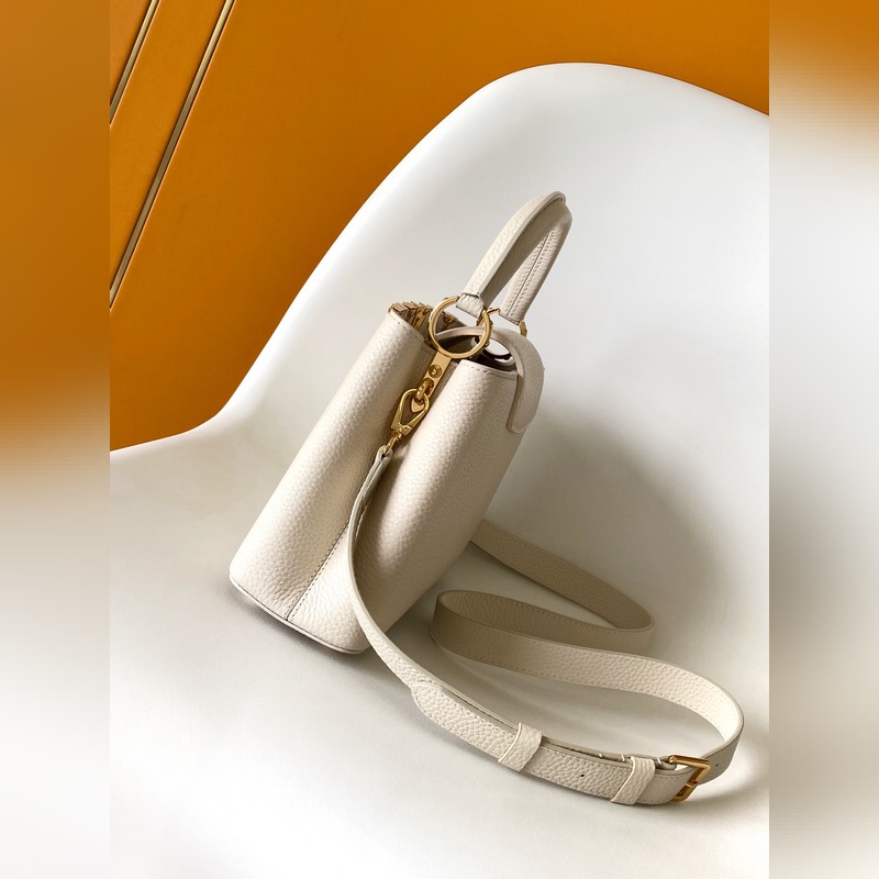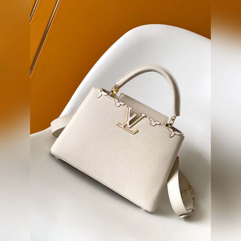 프리미엄 정품 가죽에 동적 가변 코드 [M23776 회색 M23263 검정 M23331 미색 27cm] [M23330 검정 회색 베이지 21cm] M11349 검정 회색 미색 31cm 10166 블랙 16cm】이 Capucines BB 가방은 상단 가장자리에 여유롭게 피어 있는 모노그램 플라워가 특징이며 반짝이는 조개껍질로 묘사된 모노그램이 보석처럼 빛나는 LV 레터와 대비를 이루며 루이 비통의 여성스러운 스타일을 강조합니다. 상단 손잡이와 탈착 가능한 슬림한 숄더 스트랩은 다양한 운반 옵션을 제공합니다. 31.05 x 20.0 x 11.0 cm (가로 x 세로 x 높이) 27.0 x 17.3 x 9.0cm (가로 x 세로 x 높이) 21.0 x 13.6 x 8.0cm (가로 x 세로 x 높이) 16.3 x 11.0 x 6.5cm (가로 x 세로 x 높이) 타우리옹 가죽 타우리옹 가죽 트림 가죽 안감 껍데기가 있는 금속 부품 플랩은 안쪽 또는 바깥쪽에 둘 수 있습니다. 지퍼형 포켓과 수납칸의 패치형 포켓 금속 스터드 스마트폰 짧은 지갑 및 기타 물품을 넣을 수 있습니다. 어깨끈: 탈부착 가능 길이 조절 가능 손잡이 길이: 46.5cm 조절 가능한 스트랩 길이: 55.0cm 핸들: 단일 핸들