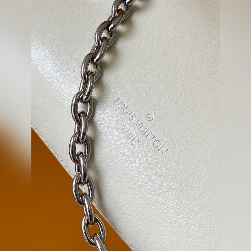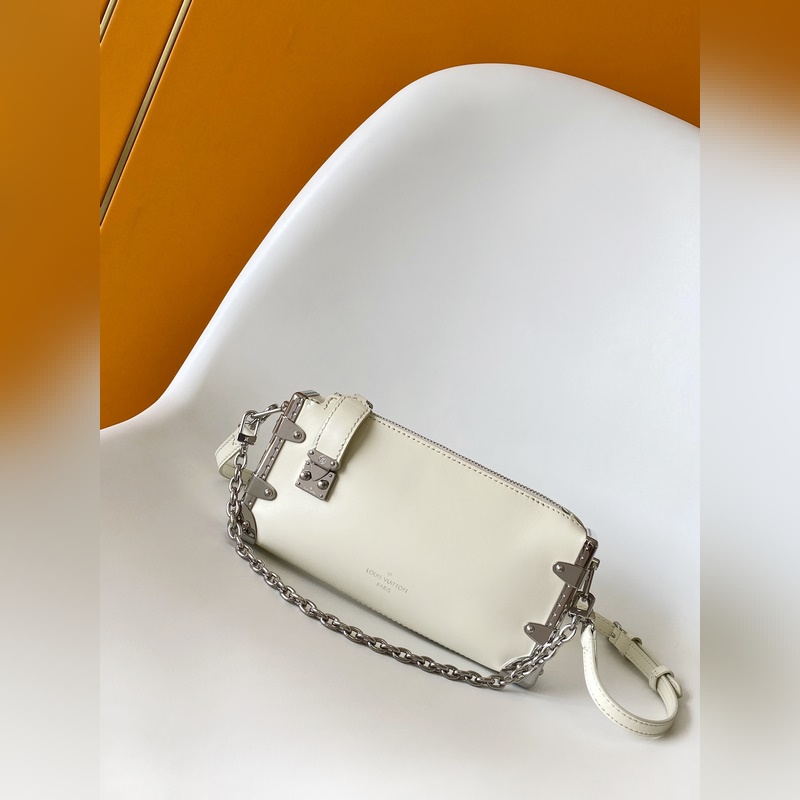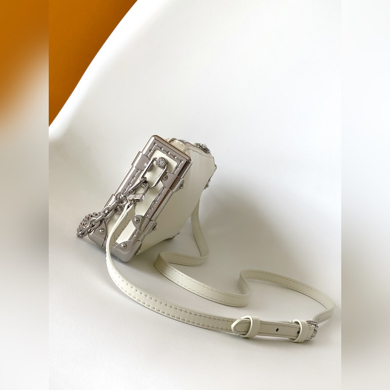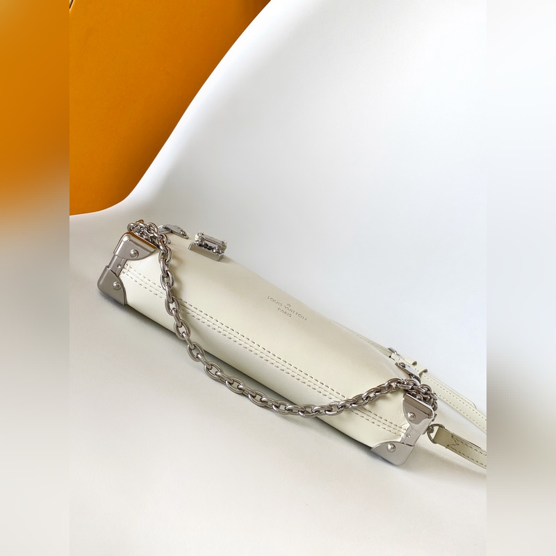 M25445 검정 M12596 회색 M12560 미색 최고 품질의 오리지널 일회용 다이나믹 가변 코드 루이비통의 전통적인 하드 케이스에서 영감을 받은 이 슬림 트렁크 백은 부드러운 소가죽과 스터드 장식 테두리 금속 S자형 잠금 버클을 결합하여 록 스타일의 날카로운 느낌을 줍니다. 반짝이는 체인과 길이 조절이 가능한 가죽 어깨끈은 모두 탈부착이 가능하여 다양한 휴대 옵션을 제공합니다. 23.0 x 12.0 x 4.0cm (가로 x 세로 x 높이) 소가죽 소가죽 트림 소가죽 안감 금속 부품 지퍼 잠금장치 어깨끈: 탈부착 가능 길이 조절 가능 손잡이 길이: 53.0cm 어깨끈 길이는 58.0cm로 조절할 수 있습니다. 체인: 제거 가능 체인 반 길이: 17.0cm