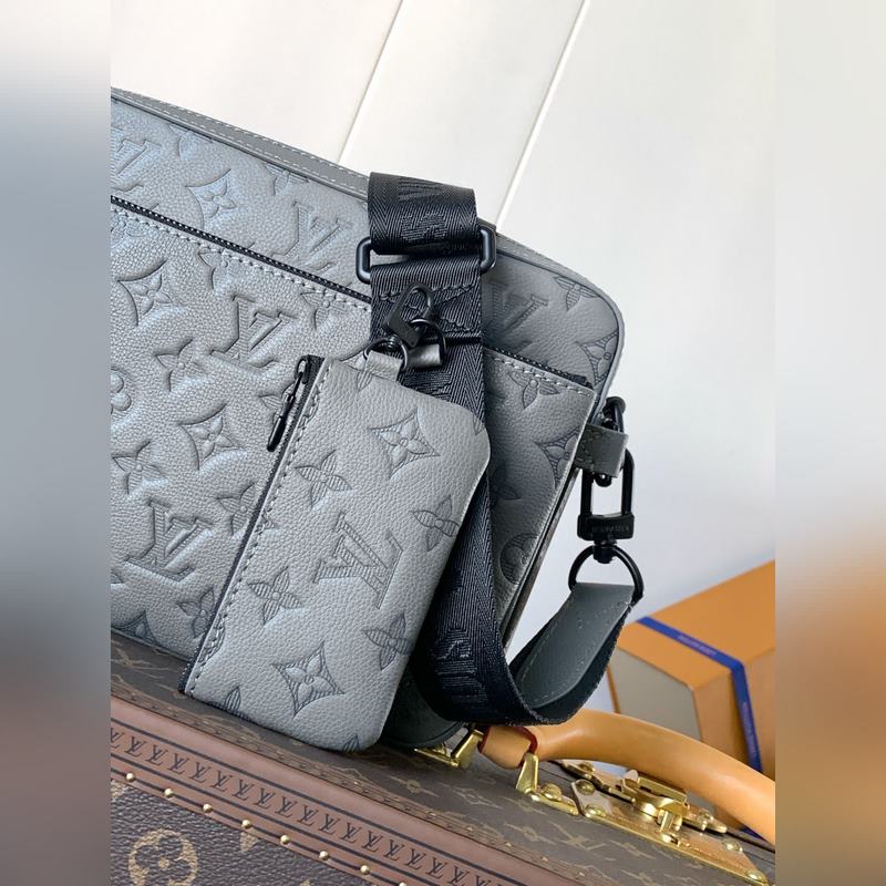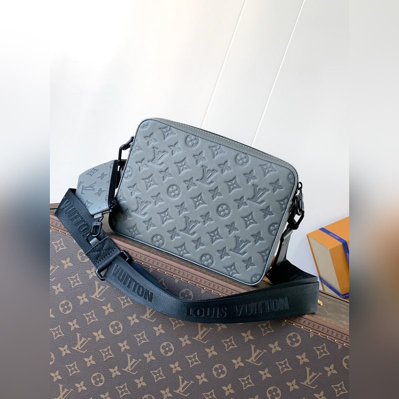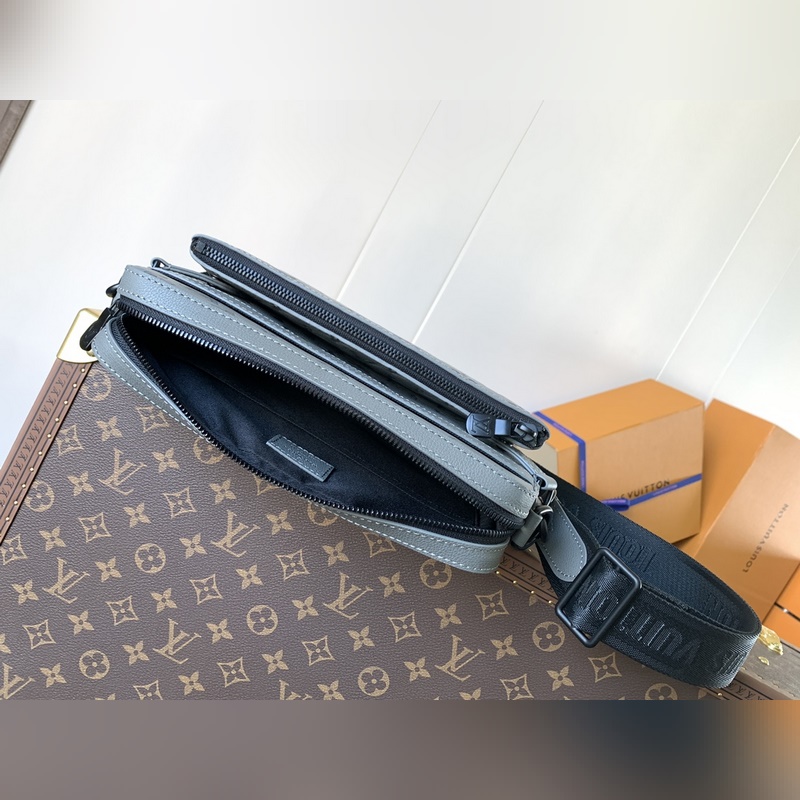최고 품질의 단일 소스 가변 코드 칩 전용 리얼 샷 M46603 그레이 트리오 메신저백은 엠보싱 처리된 모노그램 소가죽으로 만들어졌습니다. 앞쪽 지퍼 포켓과 어깨 끈에 달린 작은 동전 지갑은 모두 탈부착이 가능하며 메인 수납공간과 함께 기능적인 디자인을 더욱 풍성하게 해줍니다. 탈부착 및 길이 조절이 가능한 자카드 어깨 끈에는 로고가 새겨져 있어 어깨에 메거나 크로스 바디로 메는 것이 편안합니다. 크기: 25×18.5×7cm
