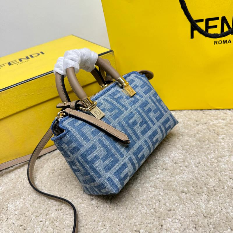 미니 바이 더웨이 보스턴 가방 연한 파란색 인조 데님 소재 FF 패턴