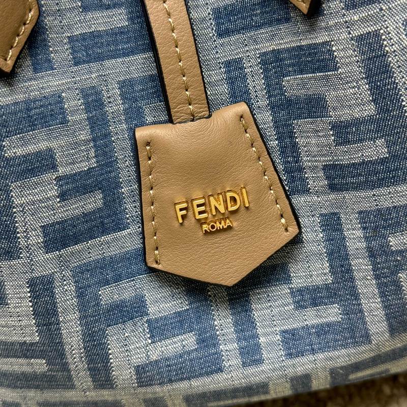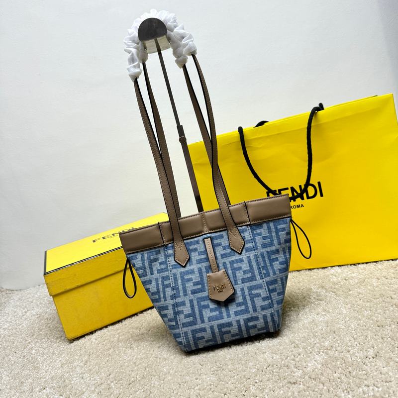 중간 크기 FF 모티프가 있는 데님 소재의 연한 파란색 원단으로 만든 오리가미 백. 이 모델은 FENDI의 이중성과 창의성을 강조하는 혁신적인 변형 가능한 디자인을 특징으로 합니다: 8개의 자석 걸쇠로 구성된 민첩한 메커니즘이 있어 오리가미 스타일 버킷 백으로 접을 수 있습니다. 자석이 모두 중앙 걸쇠에 부착되면 양쪽의 짧은 어깨 끈에 있는 가죽 끈을 부드럽게 당겨 핸드백으로 변형할 수 있습니다. 금속 FENDI 글자와 베이지색 가죽 디테일의 열쇠고리 매력이 함께 제공됩니다. 금색 마감 금속으로 안감 처리된 내부 수납공간. 가죽 소재의 이중 손잡이로 손으로 들거나 어깨에 메고 휴대할 수 있습니다. 크기: 15×15×18.5cm 모델: 9918 데님
