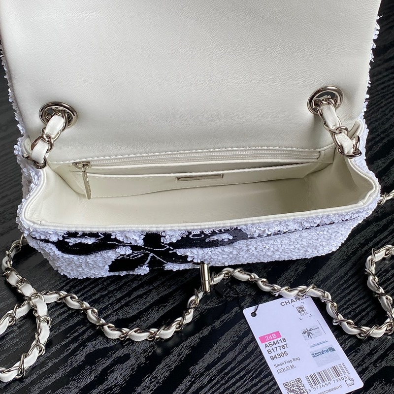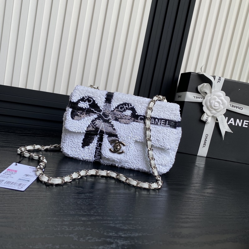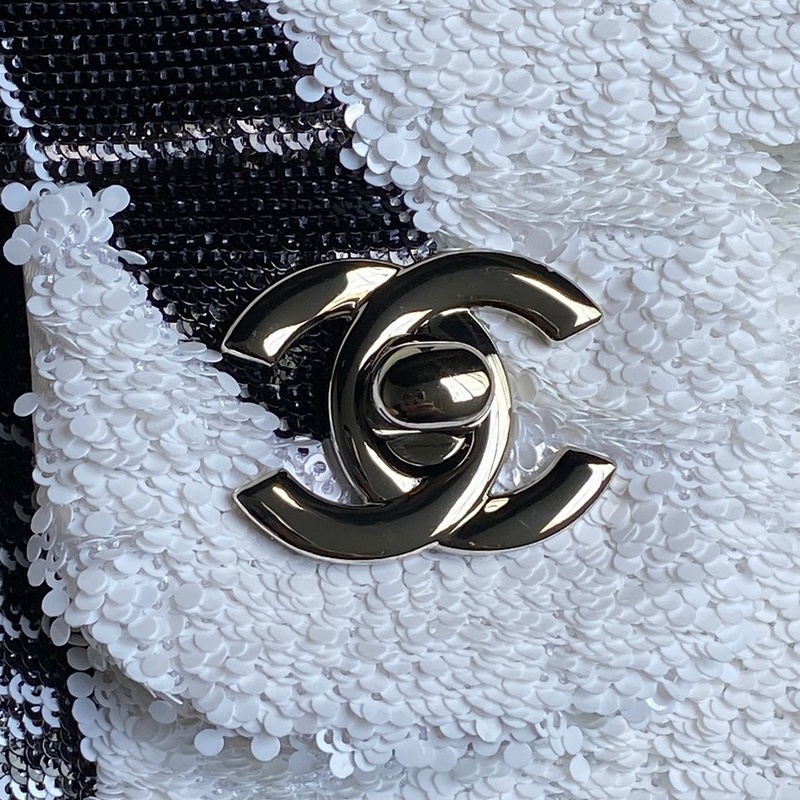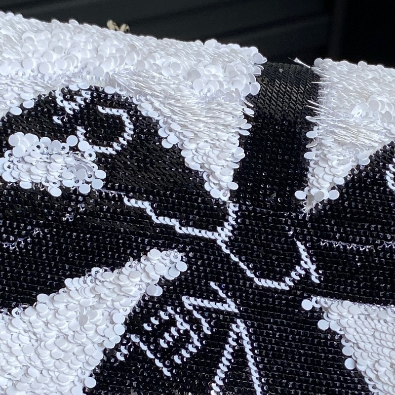 샤넬 24B 리미티드 에디션 AS4418 나비 넥타이 CF 블랙 앤 화이트 스팽글. 이 눈부신 아름다움은 사치와 화려함으로 가득합니다. 클래식한 디자인은 샤넬의 영혼입니다. 패셔니스타라면 반드시 가지고 있어야 할 아이템입니다. 정말 멋지네요! 크기 21cm