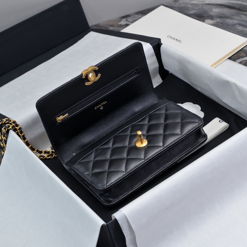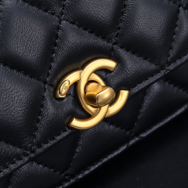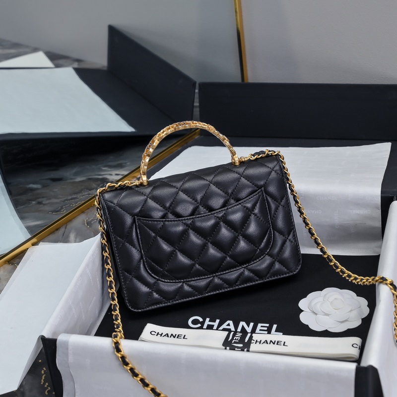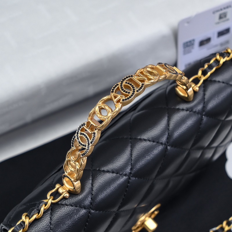 Chanel 24S 레터 니트 핸들 woc 메탈 로고 패치워크 릴리프 블랙 다이아몬드 인레이가 있는 대형 더블 C 핸들 양가죽 클래식 다이아몬드 패턴 내장형 화장 거울 넉넉한 수납 공간 숄더 크로스바디 핸드백 다용도 패션 A 3944 크기: 19cm