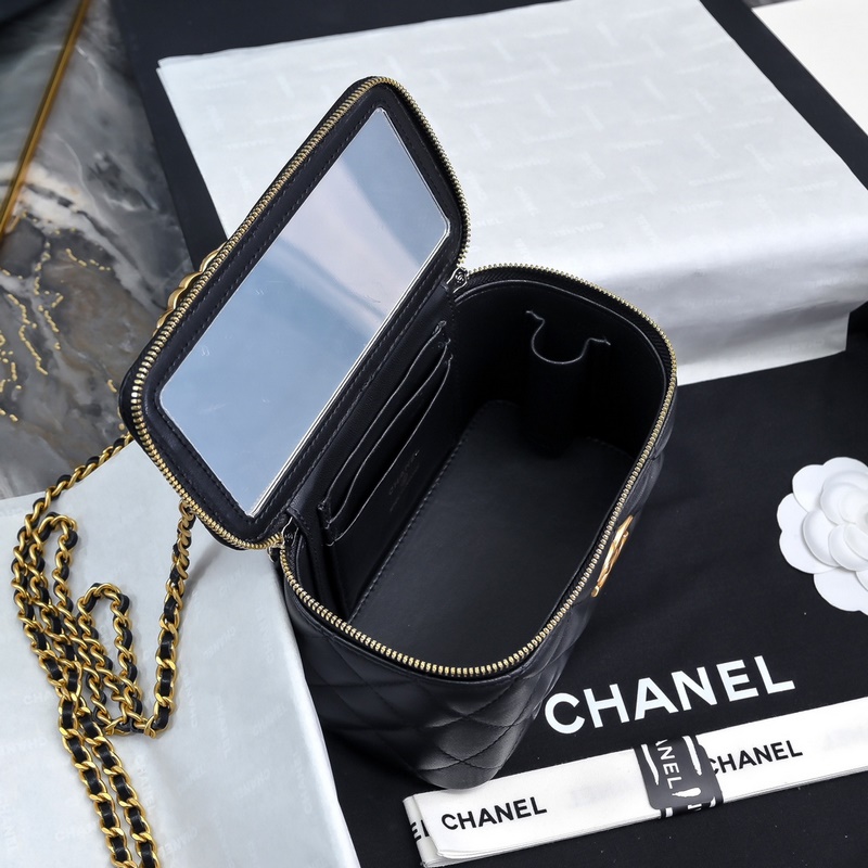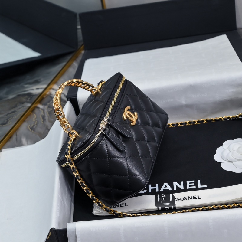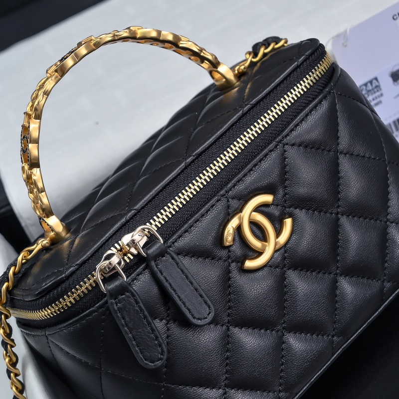 샤넬 24S 레터 니트 핸들 롱 박스 금속 로고 패치워크 양각 처리된 대형 더블 C 핸들 블랙 다이아몬드 양가죽 클래식한 다이아몬드 패턴 화장품 거울 포함 다양한 내용물 어깨에 메는 크로스바디 핸드백 다용도 가방 세련되고 다용도 A 3945 크기: 16×8×10