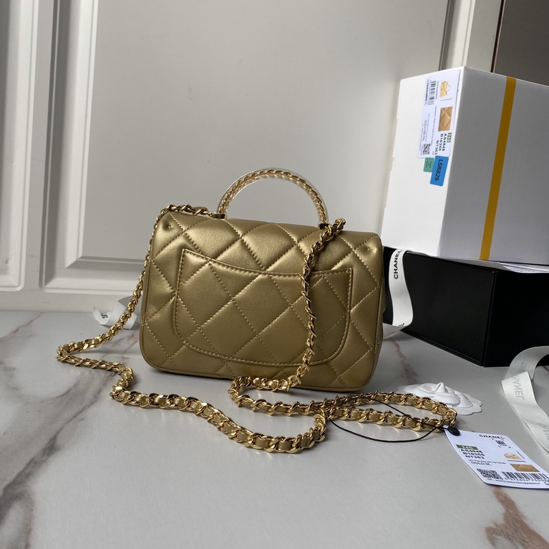 Chanel CFmini 24s 투명 손잡이 가방 AS4848 손잡이가 달린 이 가방은 정말 아름답습니다! 금색 체인과 금색 투명 손잡이가 가방과 잘 어울려 고급스러움과 고급스러움을 자아냅니다. 볼수록 더 아름답습니다. 크기 13×20×7cm