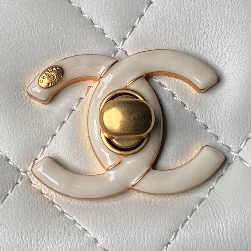 Chanel 24A 수제 시리즈 에나멜 미니 버튼 AS4967 뚜껑에 더블 C 로고 컬러 에나멜 잠금장치가 달린 체인 길이 조절 가능 우아한 느낌을 더해 줍니다. 고급스럽고 독특한 분위기를 자아내며 단순히 아름답습니다. 크기: 14×22×8.5cm