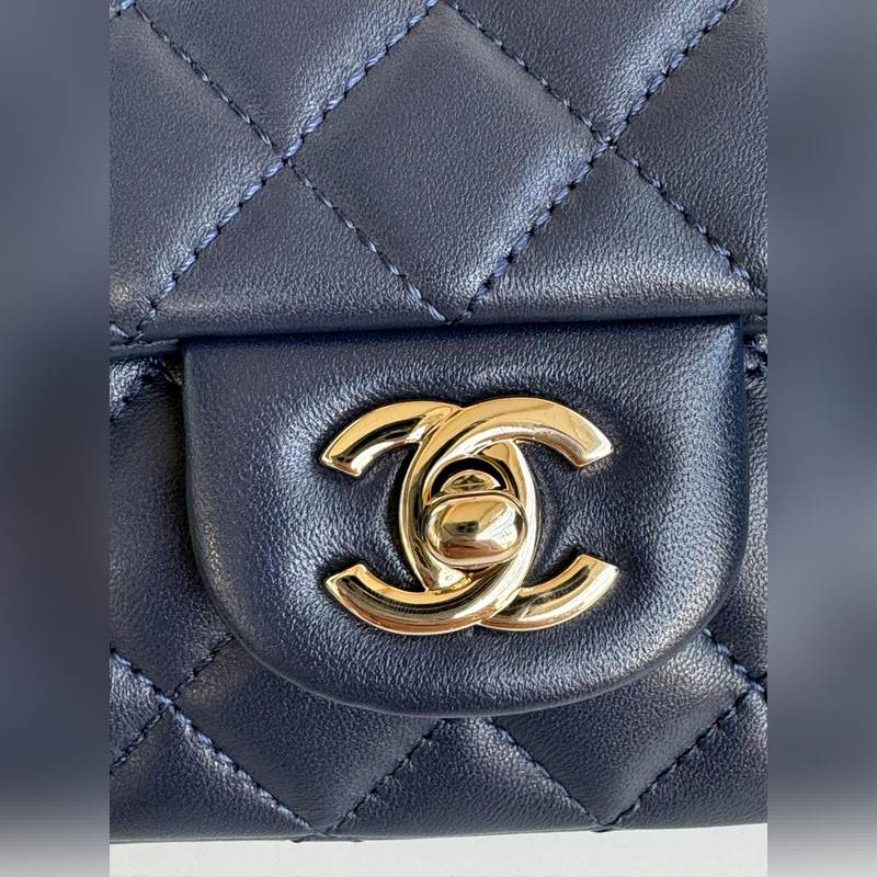 21K 최신 미니 CF 핸들 핸드백 AS2431 클래식 다이아몬드 격자 무늬 입구 인간의 머리 장식 핸들과 어울리는 섬세하고 클래식한 체인 섬세한 양가죽: 핸드백을 장식하고 돋보이게 하고 시대를 초월한 우아함을 표현합니다. 크기: 20x12x6cm