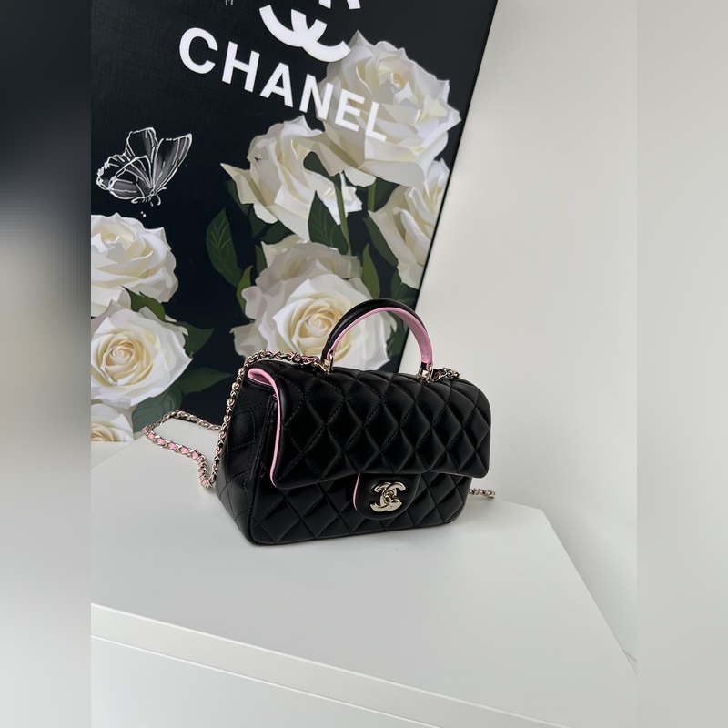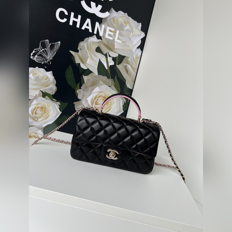 Chanel 21K 최신 미니 CF 핸들 핸드백 AS2431 클래식한 퀼팅 플랩 백 핸들과 어울리는 섬세하고 클래식한 체인 장식 섬세한 양가죽: 핸드백을 장식하고 돋보이게 하고 시대를 초월한 우아함을 표현합니다. 크기: 20x12x6cm