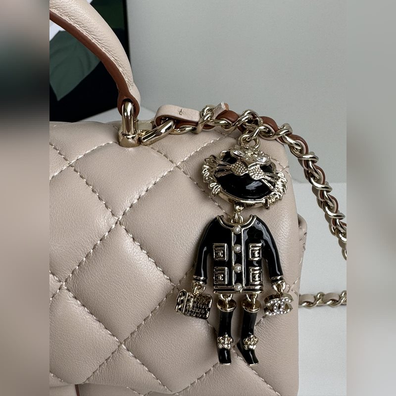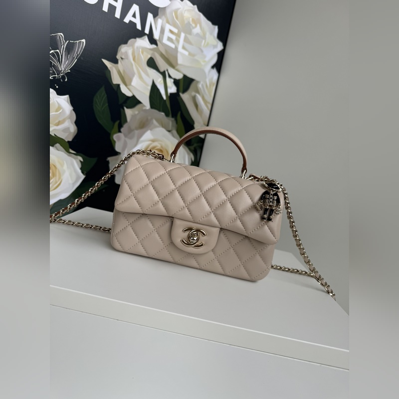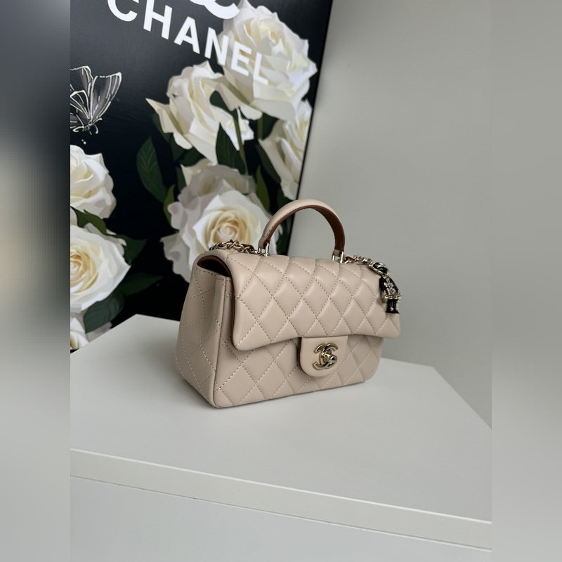 21K 최신 미니 CF 핸들 핸드백 AS2431 클래식 다이아몬드 격자 무늬 입구 인간의 머리 장식 핸들과 어울리는 섬세하고 클래식한 체인 섬세한 양가죽: 핸드백을 장식하고 돋보이게 하고 시대를 초월한 우아함을 표현합니다. 크기: 20x12x6cm
