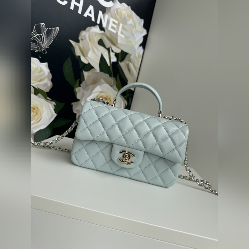 Chanel 21K 최신 미니 CF 핸들 핸드백 AS2431 클래식한 퀼팅 플랩 백 핸들과 어울리는 섬세하고 클래식한 체인 장식 섬세한 양가죽: 핸드백을 장식하고 돋보이게 하고 시대를 초월한 우아함을 표현합니다. 크기: 20x12x6cm