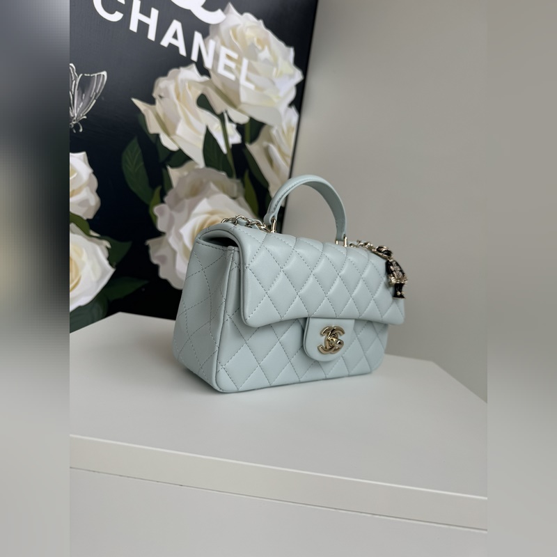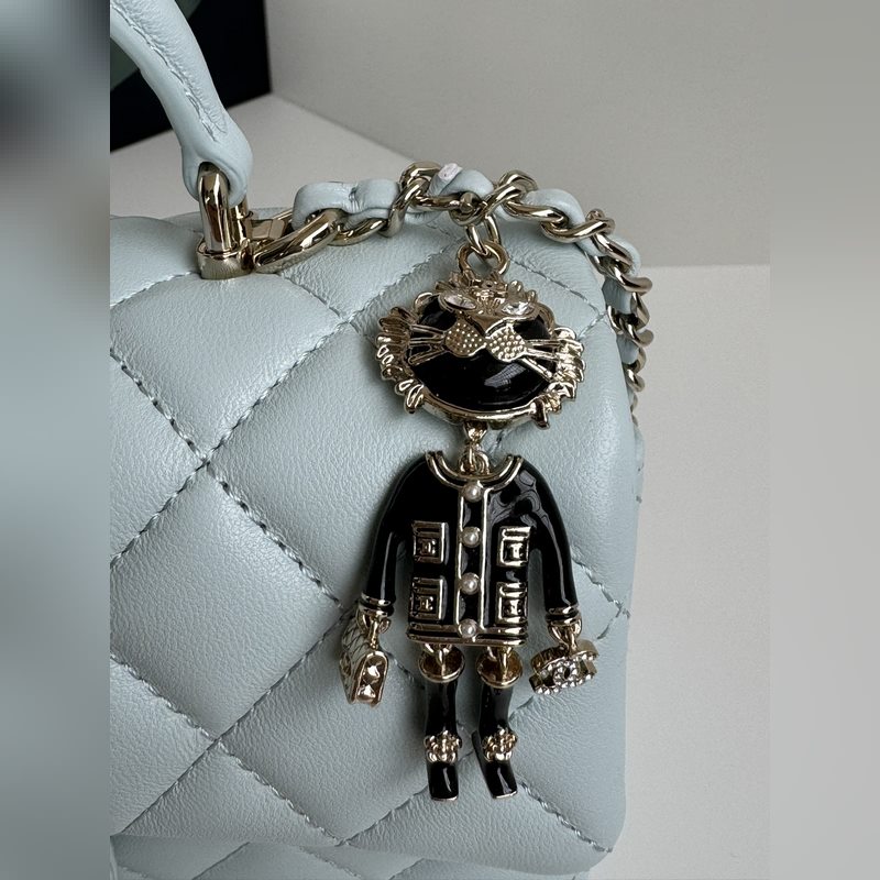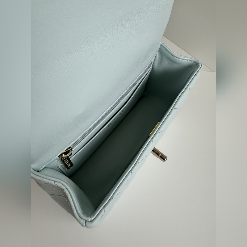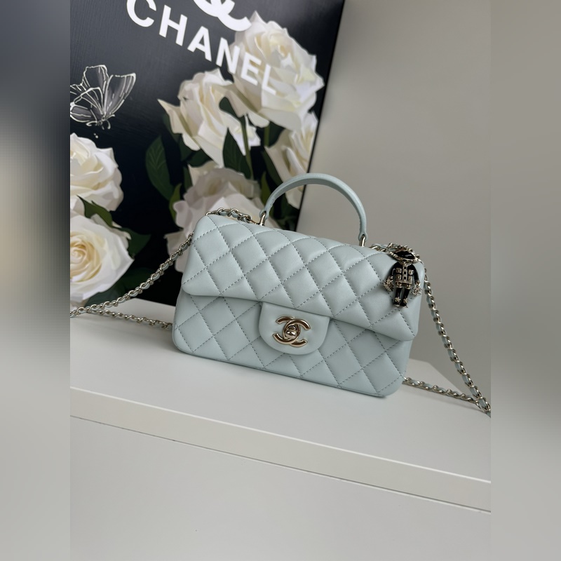 21K 최신 미니 CF 핸들 핸드백 AS2431 클래식 다이아몬드 격자 무늬 입구 인간의 머리 장식 핸들과 어울리는 섬세하고 클래식한 체인 섬세한 양가죽: 핸드백을 장식하고 돋보이게 하고 시대를 초월한 우아함을 표현합니다. 크기: 20x12x6cm