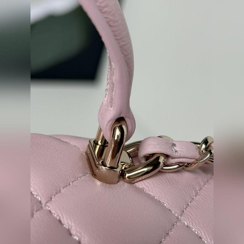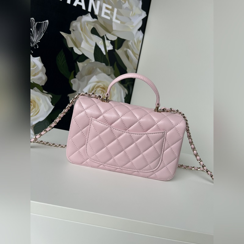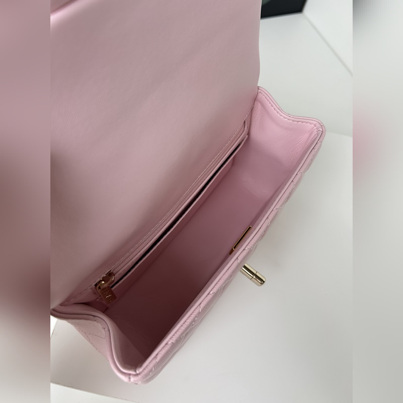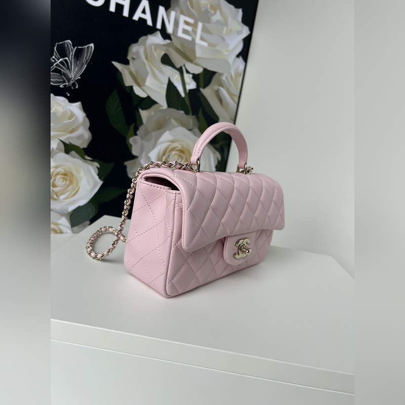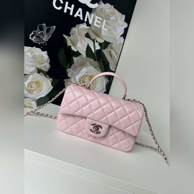 Chanel 21K 최신 미니 CF 핸들 핸드백 AS2431 클래식한 퀼팅 플랩 백 핸들과 어울리는 섬세하고 클래식한 체인 장식 섬세한 양가죽: 핸드백을 장식하고 돋보이게 하고 시대를 초월한 우아함을 표현합니다. 크기: 20x12x6cm