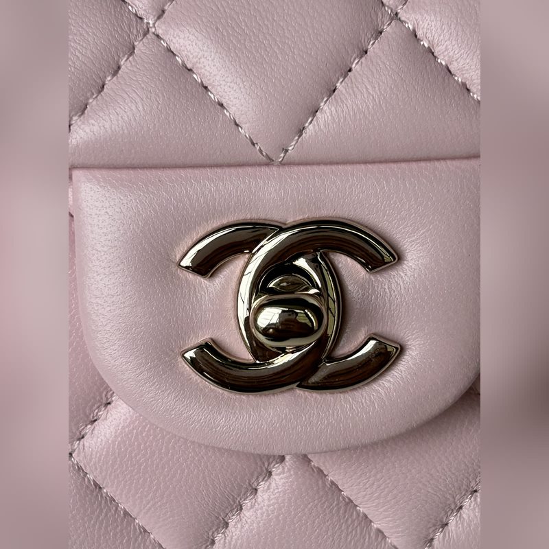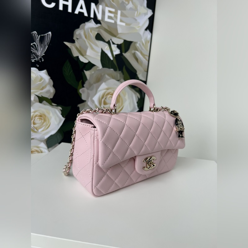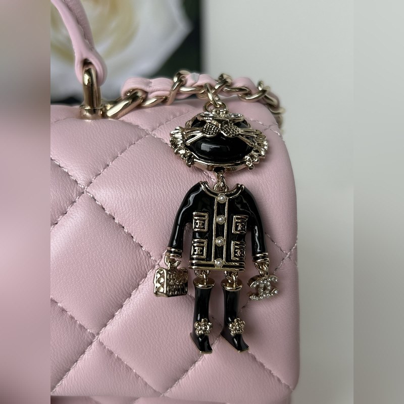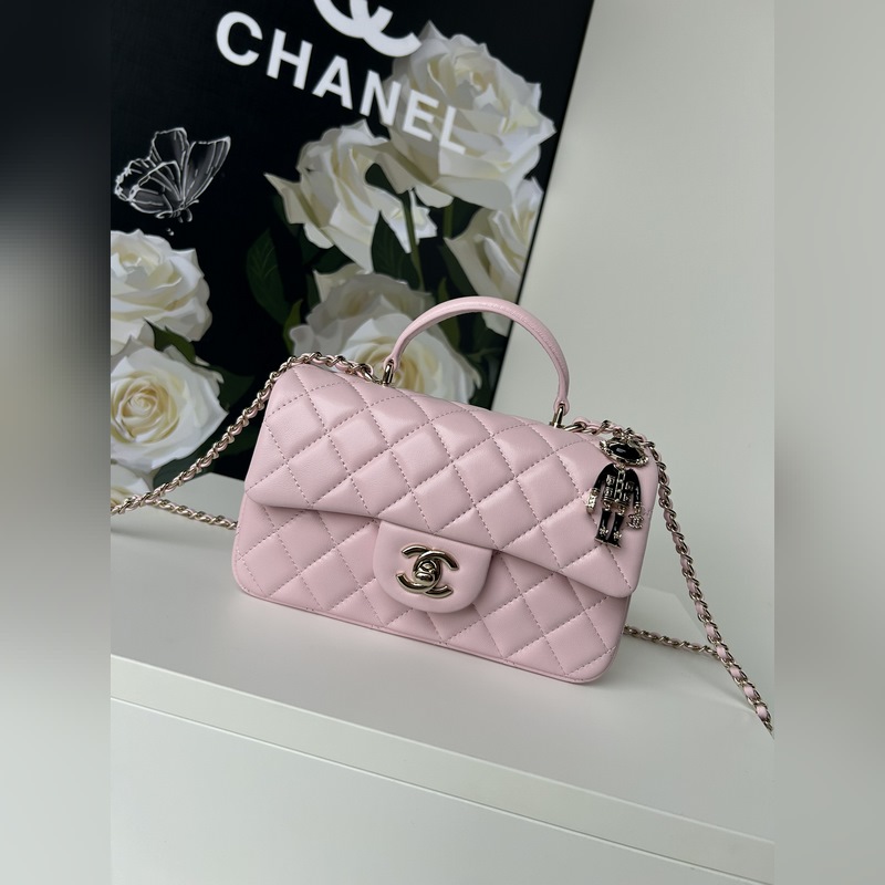 21K 최신 미니 CF 핸들 핸드백 AS2431 클래식 다이아몬드 격자 무늬 입구 인간의 머리 장식 핸들과 어울리는 섬세하고 클래식한 체인 섬세한 양가죽: 핸드백을 장식하고 돋보이게 하고 시대를 초월한 우아함을 표현합니다. 크기: 20x12x6cm