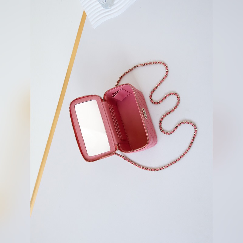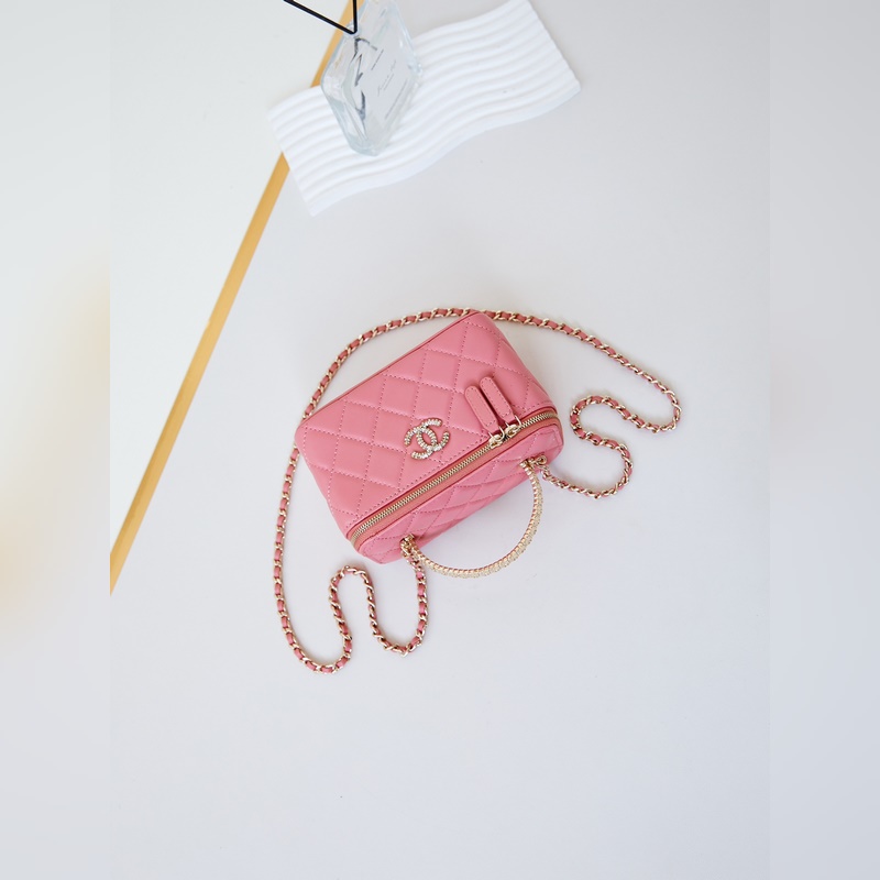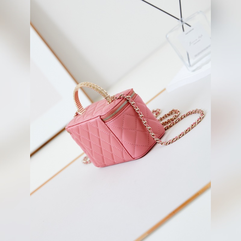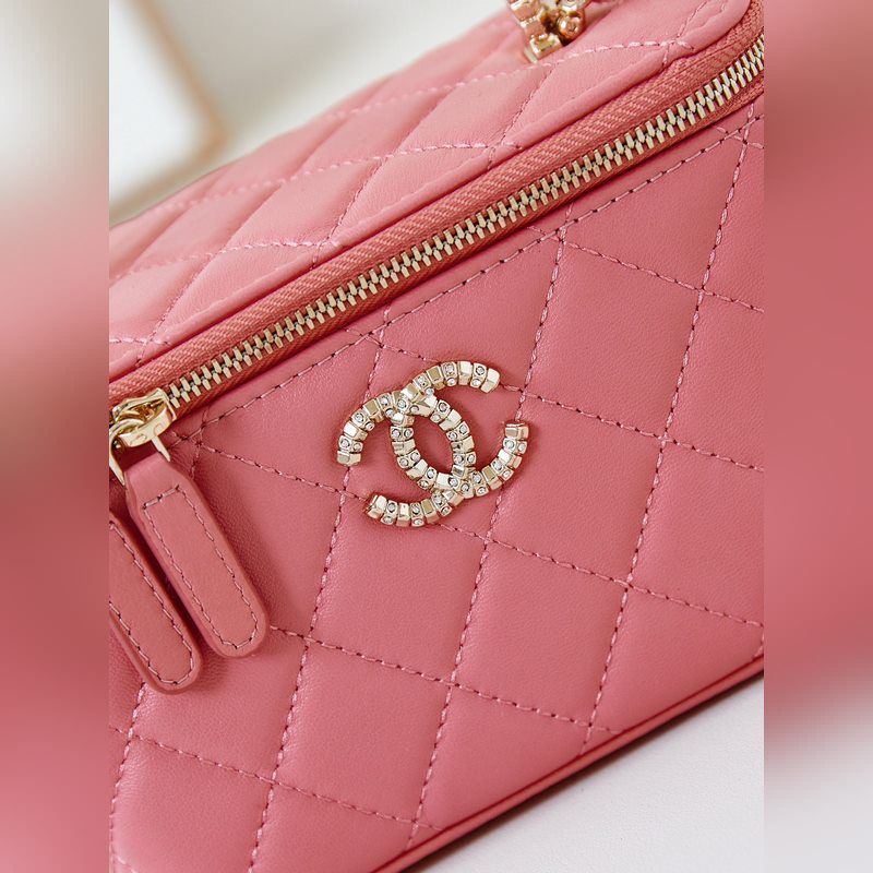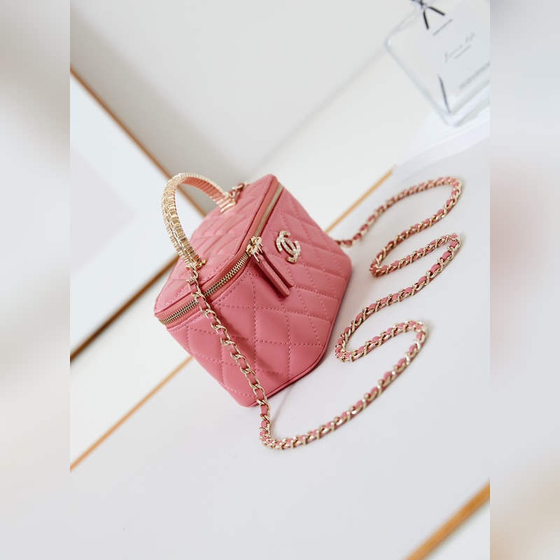 한정판 24B 다이아몬드 핸들 긴 박스형 가방 다이아몬드 핸들이 달린 화장품용 크로스 바디 백 램스킨 금속 하드웨어 핸들은 정교하고 고급스러우며 손으로 들거나 크로스 바디 백으로 메거나 어깨에 메도 잘 어울립니다. 정말 아름답습니다. 모델 번호 A 4046 사이즈 10-16-8 완전 패키지