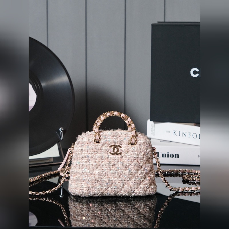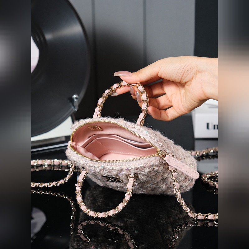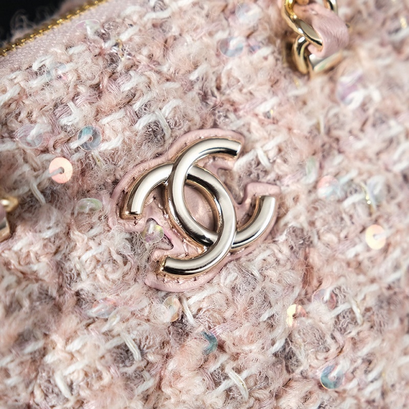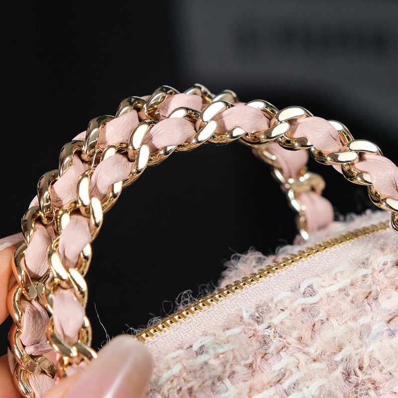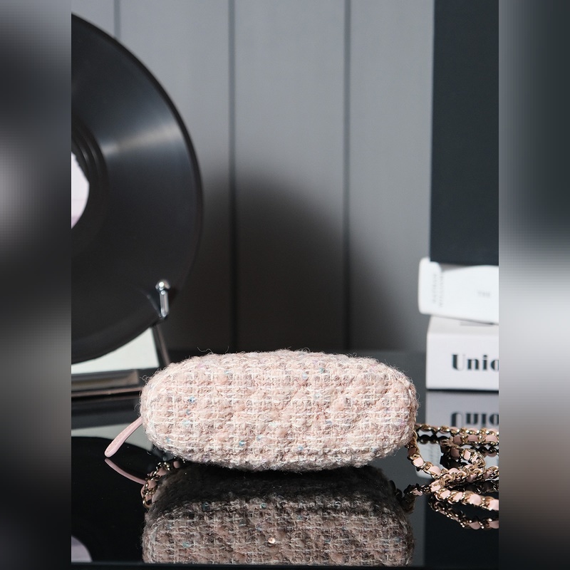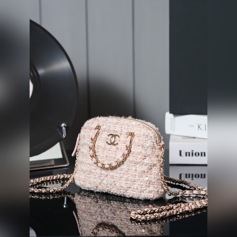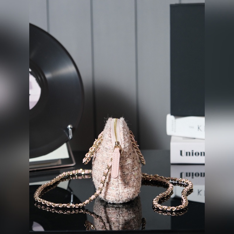 쉘백 사이즈: 11-16-5.5 핑크색 스팽글 울 24b 새로운 모직 쉘백 소녀의 매력이 넘치는 부드러운 색조와 질감이 마음을 사로잡습니다. 분홍색은 봄에 가장 부드러운 벚꽃이 소녀의 꿈을 부드럽게 스치는 듯한 느낌을 줍니다. 가방은 마치 동화 속의 이상한 나라에서 나온 것처럼 황금색 더블 C로 장식되어 있습니다. 황금색과 분홍색이 엮인 체인 디자인은 가방을 더욱 신비롭게 만듭니다. 모직 소재와 절묘한 격자 무늬가 어우러져 자연스럽게 우아함과 달콤함을 보여줍니다. 첫눈에 반하게 될 것입니다. 이 가방이 바로 여러분이 찾고 있던 가방입니다. 아이템 번호 AS3354