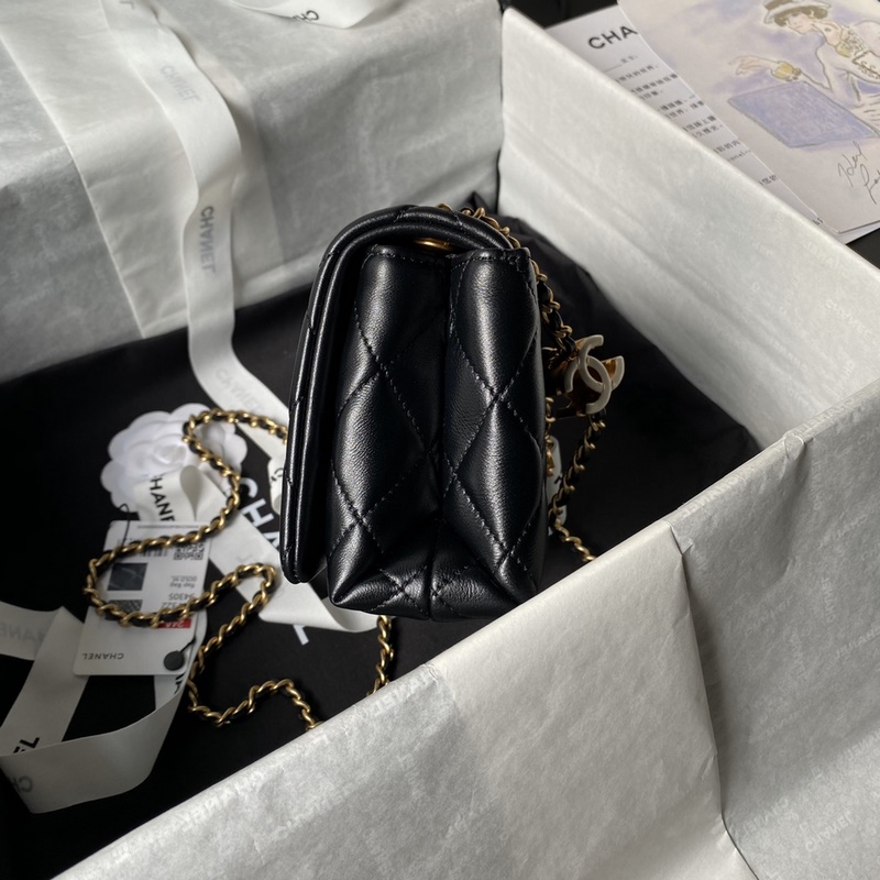 Chanel 24A 수제 방문 시리즈 에나멜 버튼 미니 cf AS4973 뚜껑에 있는 더블 C 로고 색깔이 있는 에나멜 걸쇠가 달린 체인 길이 조절 가능 우아한 느낌을 더해 주고 독특하고 고급스러운 분위기를 자아내며 그저 아름답기만 합니다. 크기: 11×18×5.5cm