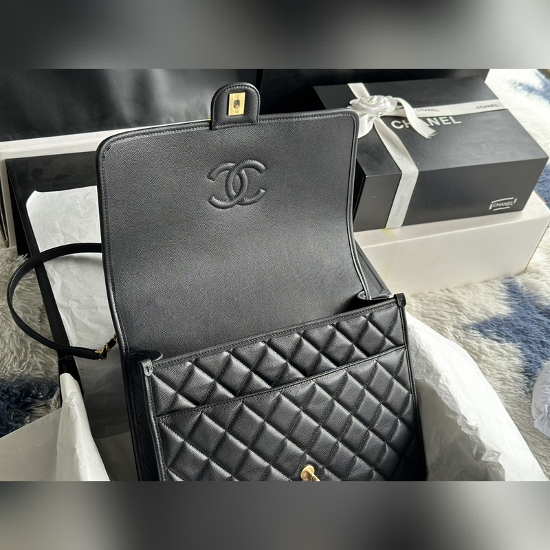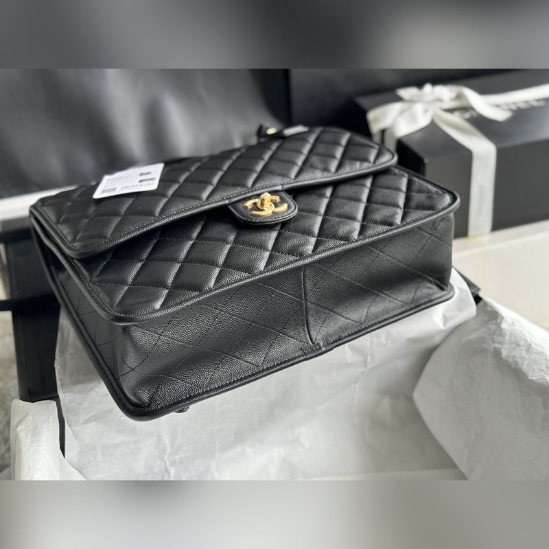 프랑스 · 고급 맞춤 제품 샤넬 AS3662# 2022년 샤넬의 가장 인기 있는 메신저 백: 볼 패턴 캐비어 시리즈 볼 패턴 소가죽과 특허 가죽으로 제작된 휴대용 배낭 레트로하고 세련된 디자인 상당한 용량 소형 컴퓨터 태블릿 출장 필수품 크기: 31.5x31x9cm
