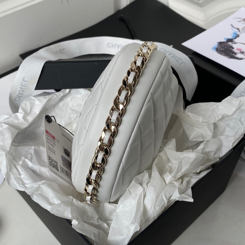 Chanel 23K 이브닝 백 A 3095 양가죽과 골드톤 메탈. 귀여운 이 가방은 둥글고 섬세한 실루엣을 가지고 있습니다. 어깨에 메고 다닐 수는 없지만 손에 들고 다니기만 해도 이미 여러분의 스타일을 돋보이게 해 줍니다. 클래식한 퀼팅 패턴과 가죽 및 메탈 체인 스트랩의 조합은 참신함과 복고적인 분위기를 자아냅니다. 크기: 16x16x5.5cm