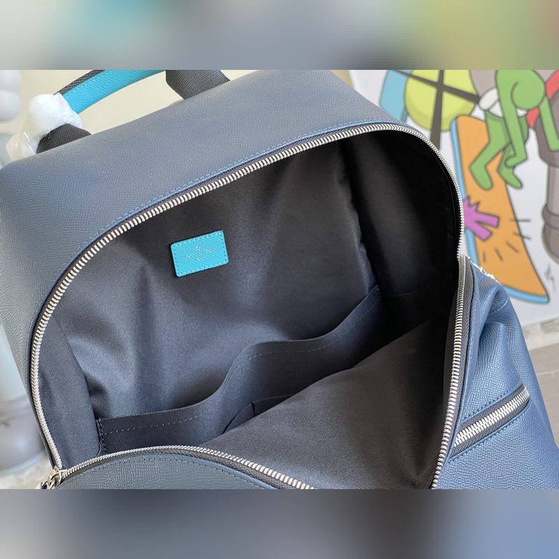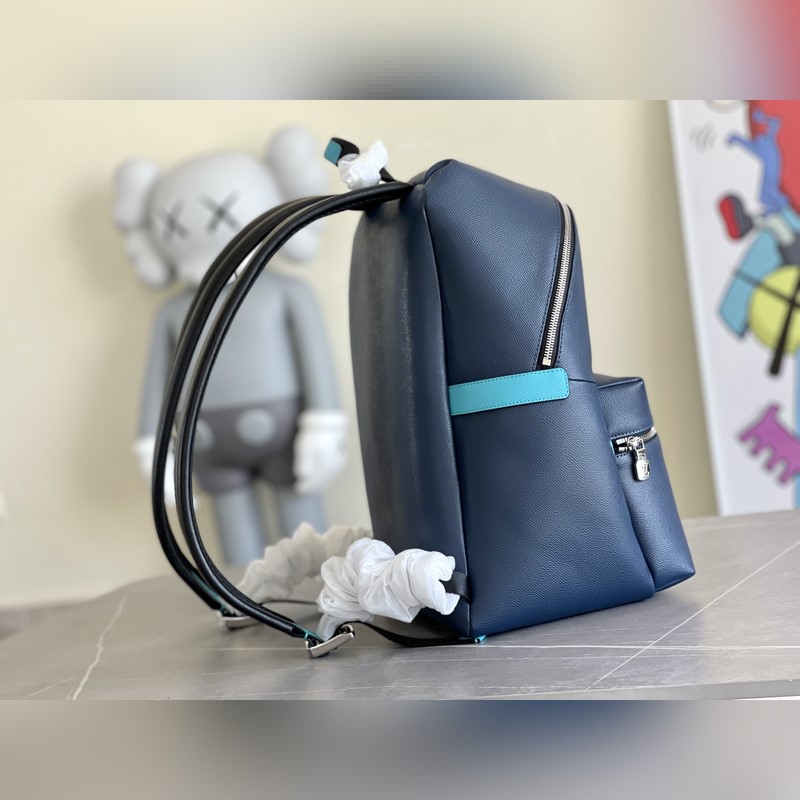 M30359 다크 블루 디스커버리 백팩은 다크 컬러로 염색된 타가 가죽에