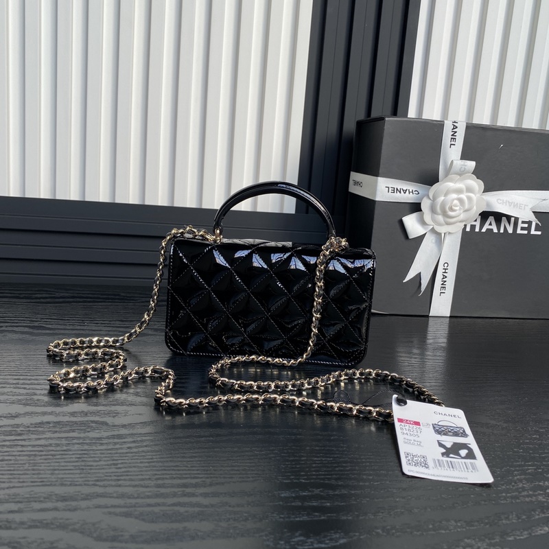 Chanel 24K A 3226 이 제품은 정말 고급스러워 보이고 멋스러운 느낌을 줍니다. 매우 세련되고 다용도로 사용할 수 있으며 실용적입니다. 가벼운 금색 금속 체인이 달린 특허 가죽입니다. 매우 심플한 스타일이고 누가 이 제품을 사지 않을 수 있겠습니까? 크기는 17cm입니다.
