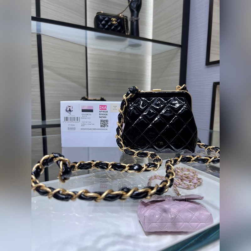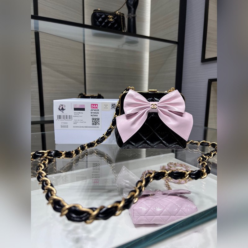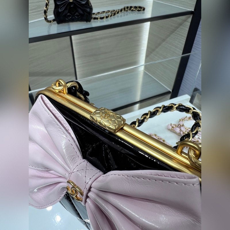 Chanel 24A 최신 모델 보우 클립 백 이브닝 백 블랙과 핑크 컬러 매칭 A 4028Y