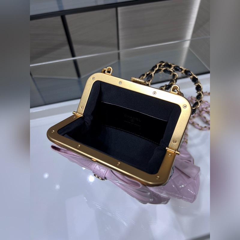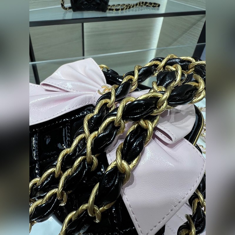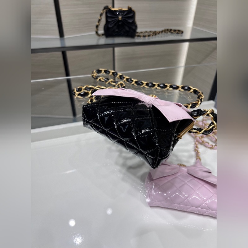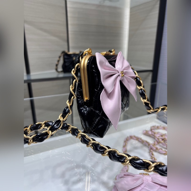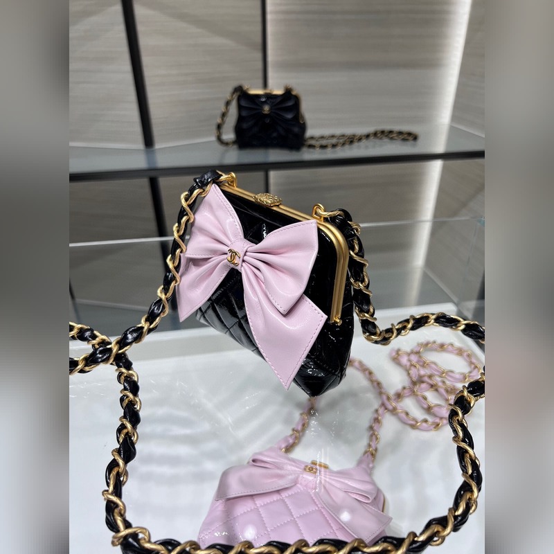 Chanel 24A 최신 모델 보우 클립 백 이브닝 백 블랙과 핑크 컬러