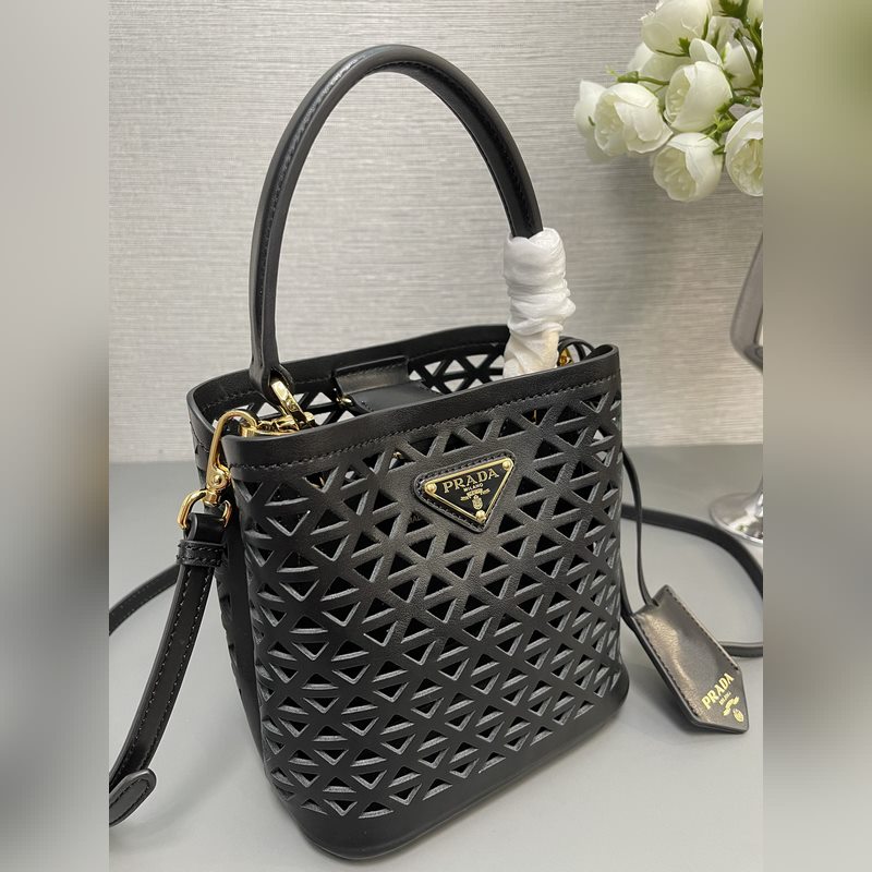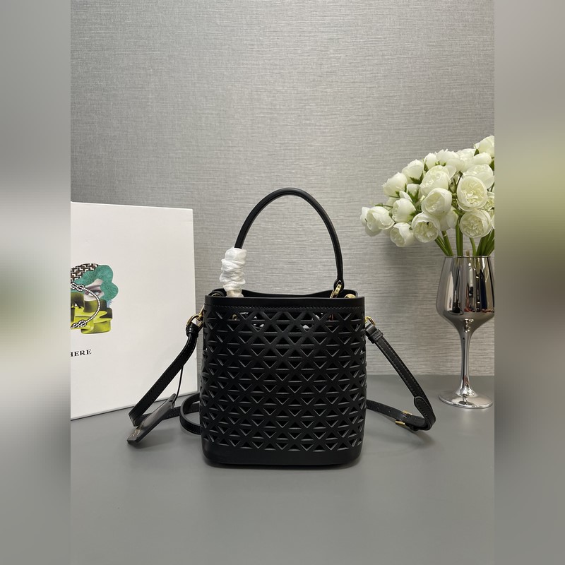 [최고 품질의 정품] 빈 공간이 있는 새로운 올가죽 버킷백 1BA217이 출시되었습니다! 전 세계적으로 인기 있는 포켓몬 사피아노 버킷백. 크기: 18×17×10.5cm!