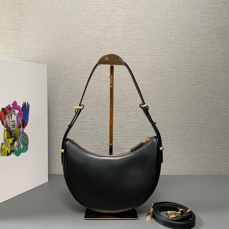 [최고 품질의 정품] (대형 신제품) 더블 숄더 스트랩이 달린 문 핸드백 1BC194. 이 심플한 문 핸드백은 현대적이고 다양한 방식으로 소가죽의 매력을 발산합니다. 곡선형 가방 디자인은 길고 짧은 두 개의 조절 가능한 어깨 끈이 달려 있어 원하는 대로 쉽게 스타일을 바꿀 수 있습니다. 내부는 수입 양가죽으로 안감이 되어 있고 금속 장식은 화려한 느낌을 더해 줍니다. 전체적인 효과는 매우 멋지고 트렌디하며 유행에 뒤처지지 않는 또 하나의 인기 있는 스타일입니다. 지금 구입하세요! 크기: 길이 22.5 x 높이 18.5 x 밑면 6.5cm