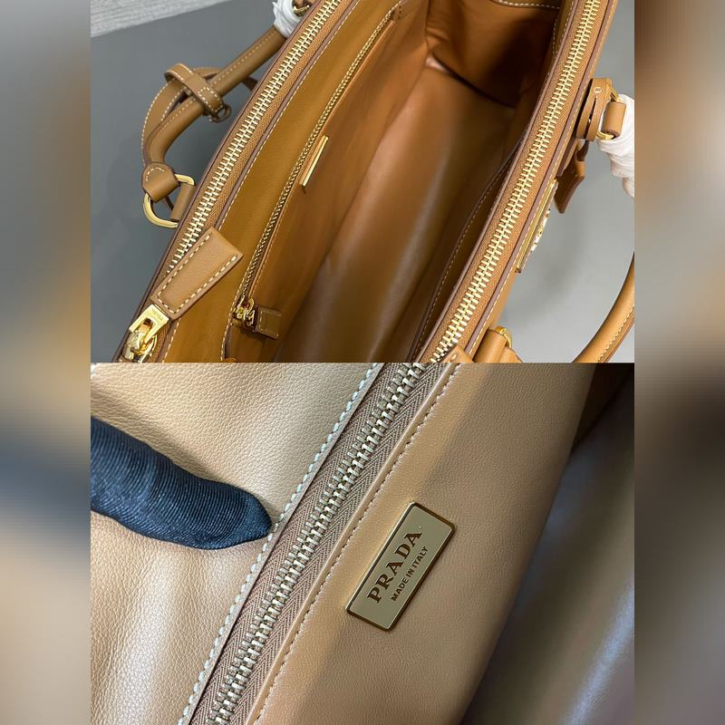 [최고 품질의 오리지널 싱글] (1BA274 일반 가죽) 새로운 킬러 백 오리지널 싱글 퀄리티 사피아노 가죽 더블 핸들 탈부착이 가능한 조절식 가죽 숄더 스트랩 금도금 하드웨어 삼각형 가죽에 금속으로 새겨진 로고가 있는 탈부착식 가죽 열쇠 고리 측면 스냅 잠금 외부 지퍼 포켓 2개 내부 지퍼 포켓 3개 그 중 하나는 지퍼 포켓 소프트 램스킨 안감 가죽 발 모델: 1BA274 제조업체 코드 165 크기: 32×22.5×13.5cm!