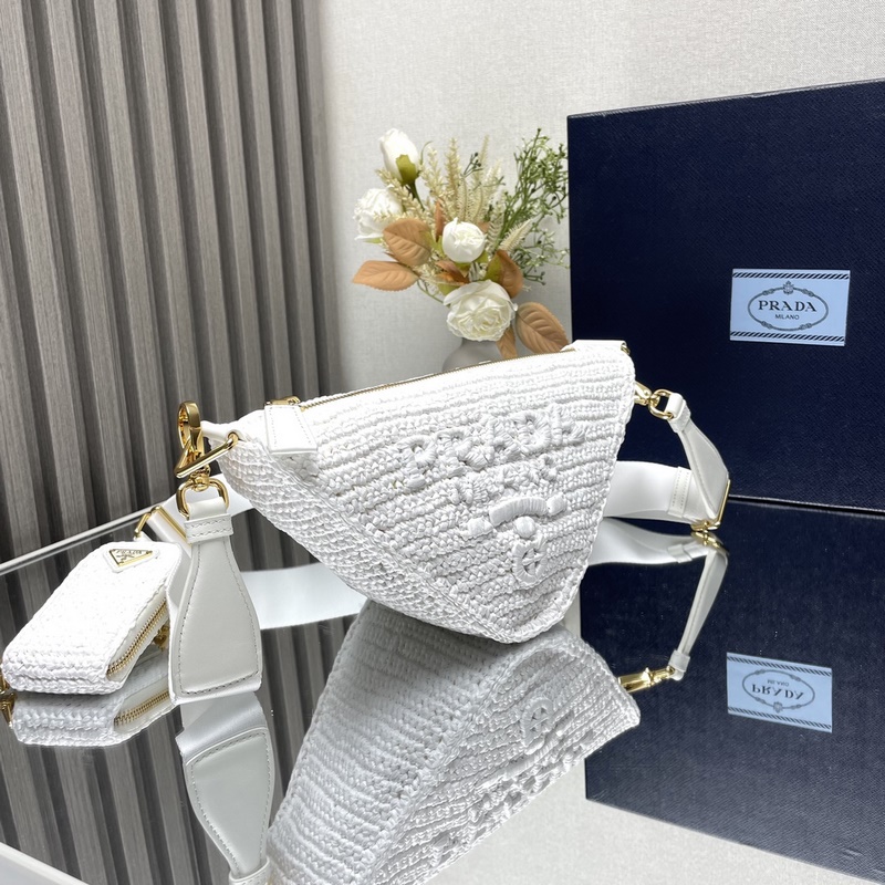 [최고 품질의 정품] 위커 트라이앵글 백 1BH190 이 손으로 짠 배낭은 디자인이 정말 뛰어납니다. 입체적인 손으로 짠 글자가 특히 세련되고 정교해 보입니다. 용량이 크고 몸에 잘 어울립니다. 제가 가장 좋아하는 부분은 탈착식 파우치가 달린 어깨 끈입니다. 여름에 꼭 필요한 아이템이며 100% 시선을 사로잡을 것입니다. 재고가 소진될 때까지 구매하세요! 크기: 26 x 14 x 10.5cm