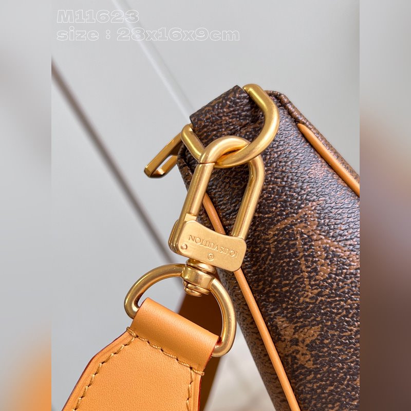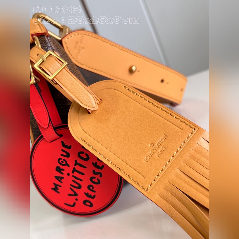 [최고급 오리지널 M11623] 이 Ochette Accessoire XL 가방은 시대를 초월한 모노그램 패턴의 모노그램 더스트 캔버스로 만들어져 1990년대의 클래식한 디자인에 멋스러운 느낌을 더해줍니다. 넉넉한 지퍼식 메인 수납공간에는 패치 포켓이 있으며 기능은 없지만 태슬이 달린 이름표와 Marque L.Vuitton D? os?e 장식은 모두 탈착이 가능합니다. 28 x 16.5 x 9cm(길이 x 높이 x 너비)