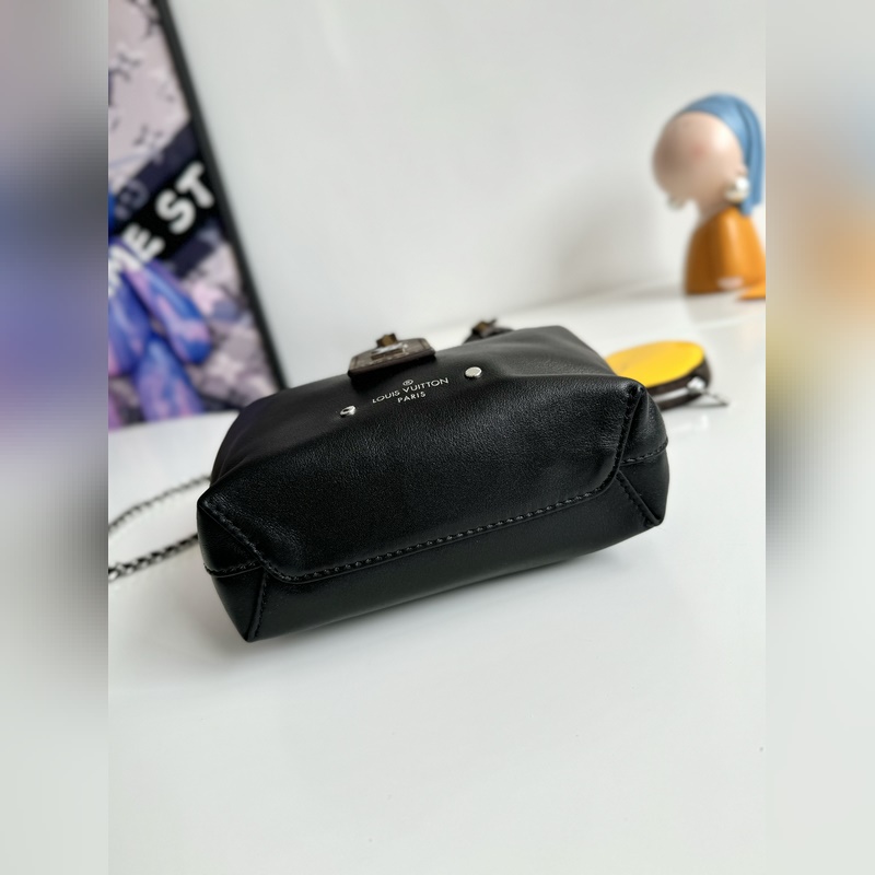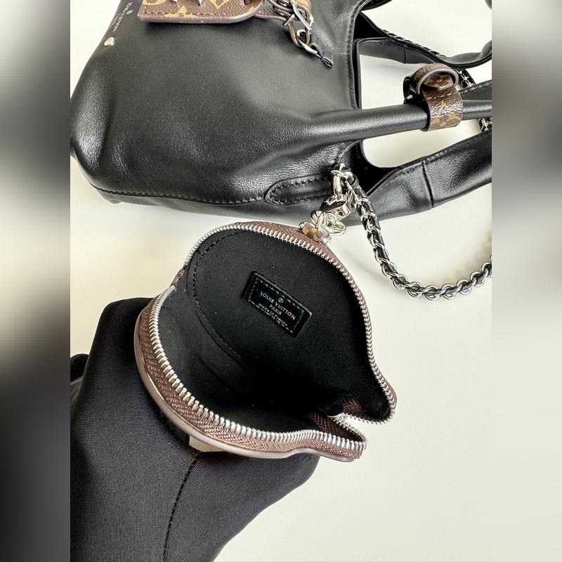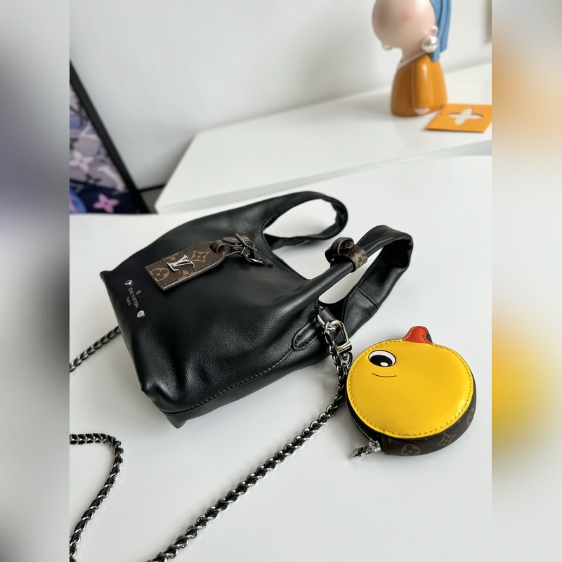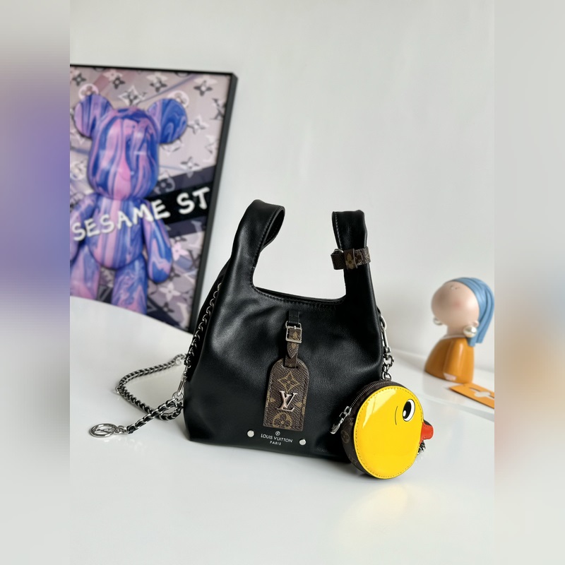 Dynamic Chip 오리지널 싱글 M11387 블랙 해외 한정판 실제 사진! 니콜라 제스키에르와 중국 예술가 썬 이티엔이 힘을 합쳐 부드러운 양가죽으로 만든 독특한 모양의 아틀란티스 BB 백을 만들었습니다. 특허 받은 소가죽 소재로 만든 귀여운 오리 동전 지갑은 길이 조절이 가능한 가죽 체인과 금속 LV 서클 로고로 장식되어 있으며 탈착식 모노그램 캔버스 이름표가 달려 있습니다. 크기: 17×17×7cm