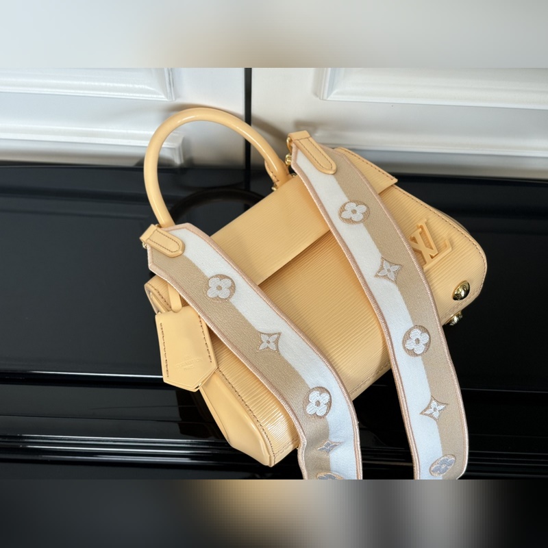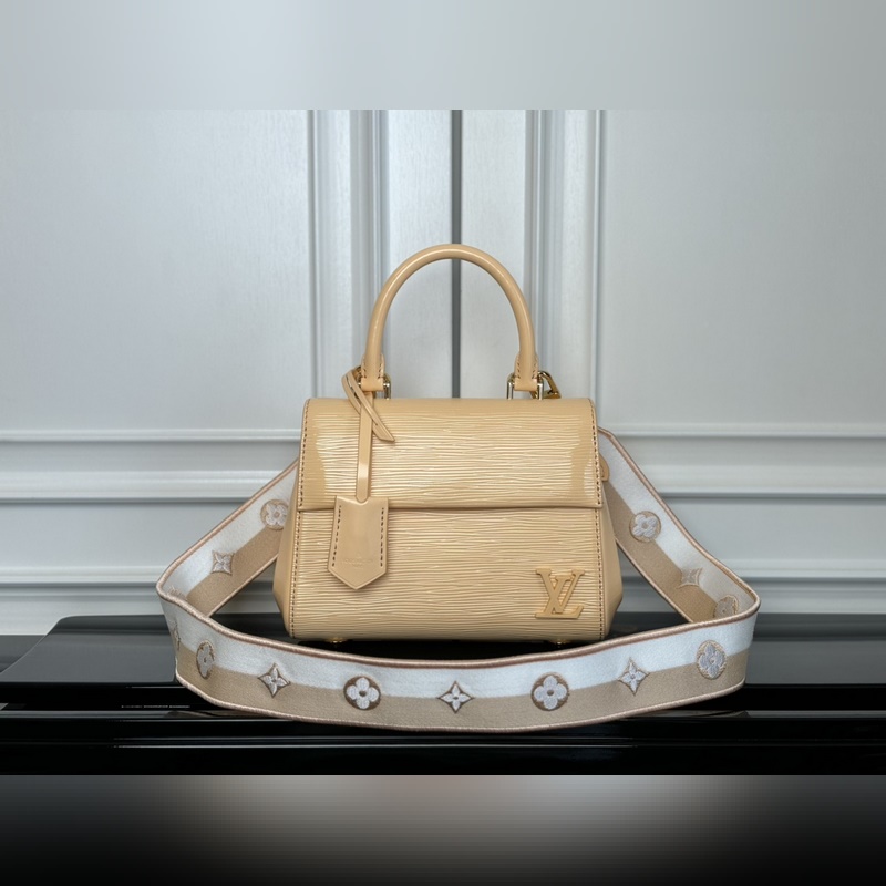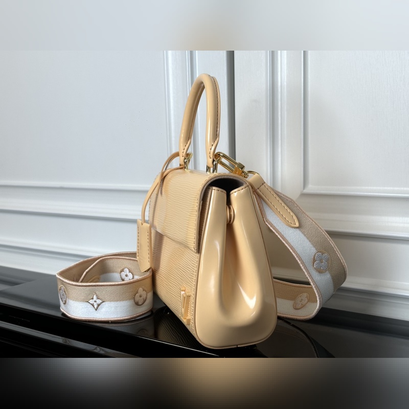 M58928 아몬드 [최고 품질의 오리지널 싱글] 2025년 신제품 클뤼니 미니 반짝이는 가죽 골판지(동적 코드) 카운터의 전자 칩과 동기화되어 가방은 코드와 함께 배송됩니다. 이 클뤼니 미니 백은 탈부착 가능한 자카드 숄더 스트랩을 통해 두 가지 스타일을 보여줍니다: 루이비통 로고는 브랜드의 정체성을 드러내고 뒤집으면 모노그램 꽃의 은은한 꽃송이가 드러납니다. Ei 가죽 백 본체는 실크처럼 부드러운 레진 소재의 LV 로고와 조화를 이룹니다. 탈부착 가능한 숄더 스트랩은 좀 더 격식을 갖춘 느낌을 줍니다. 20.0 x 16.0 x 7.5 cm