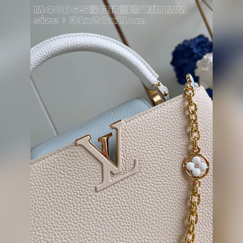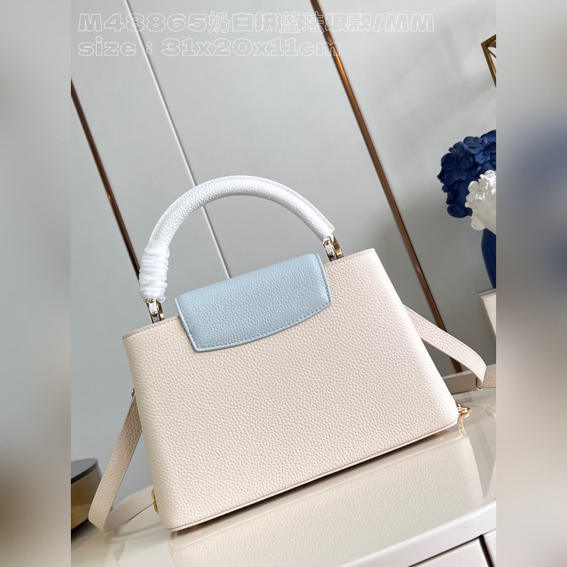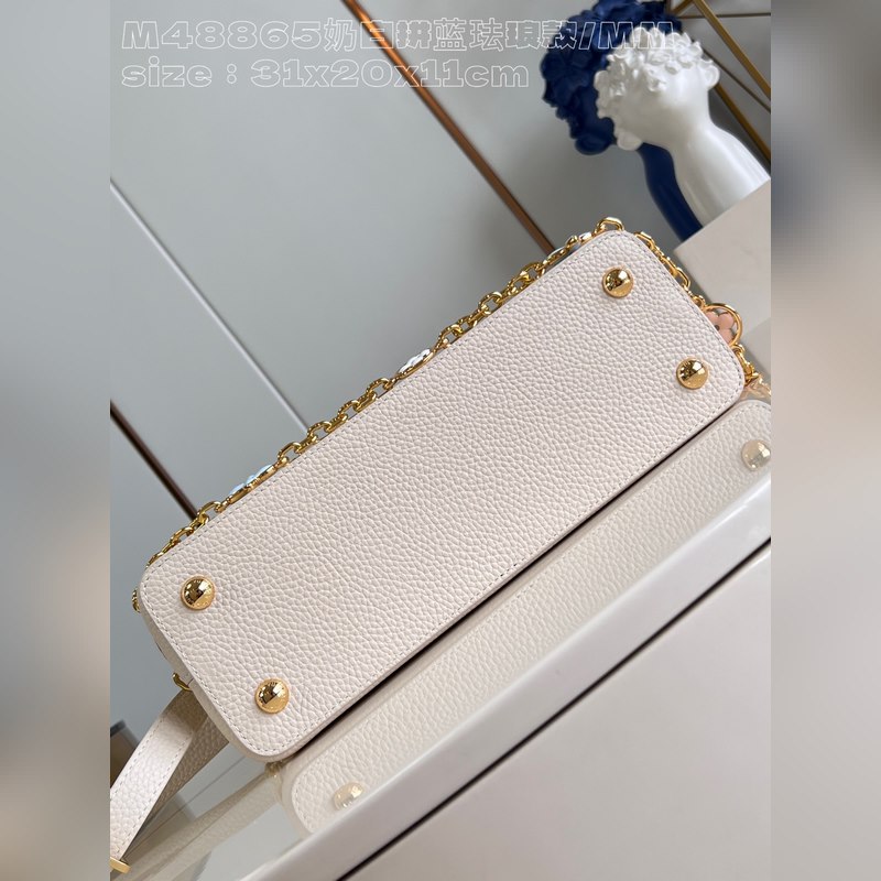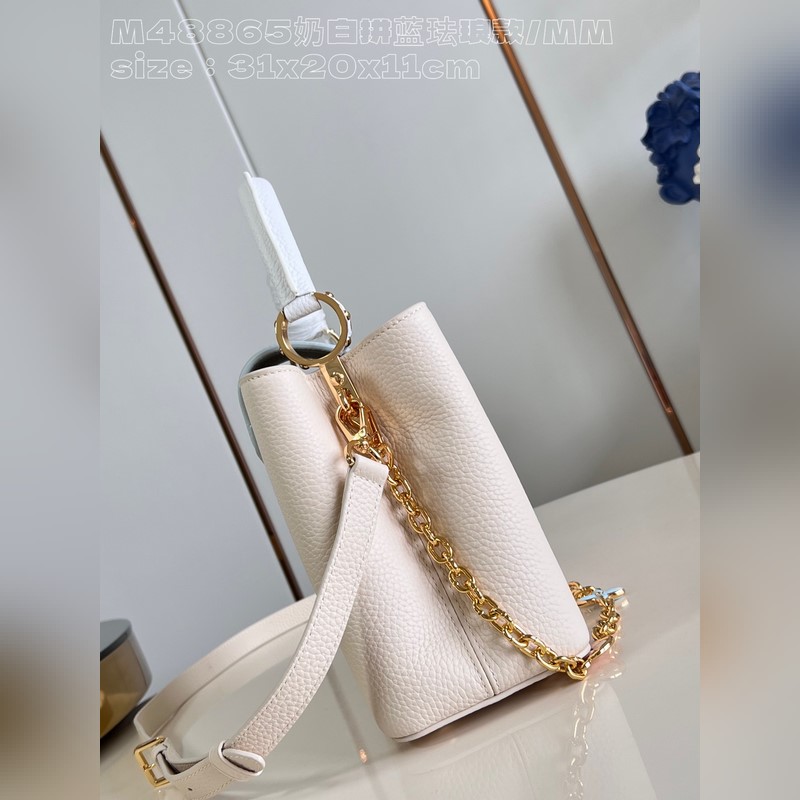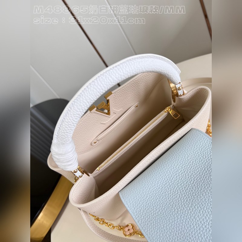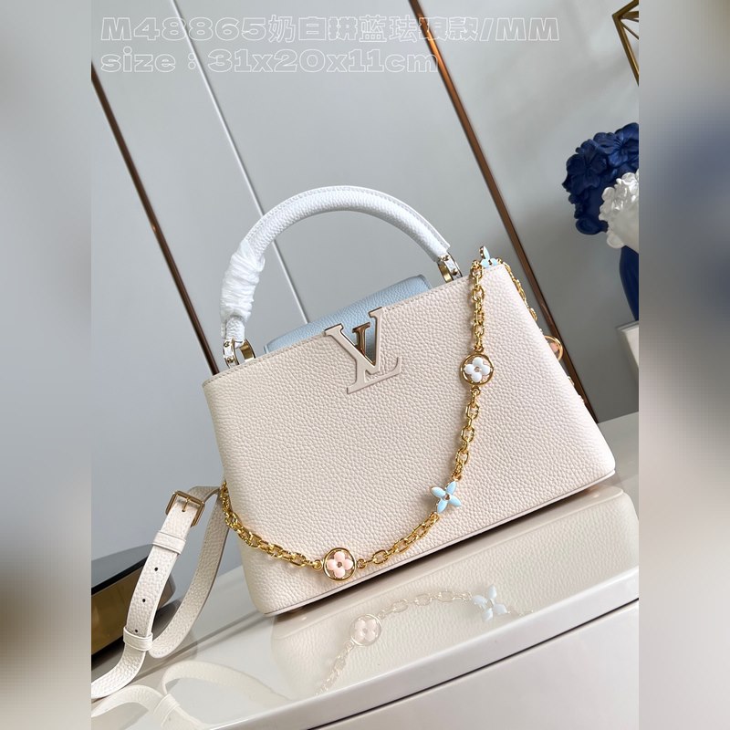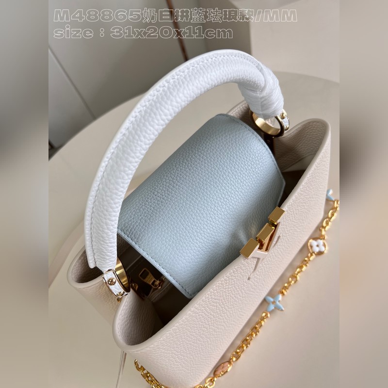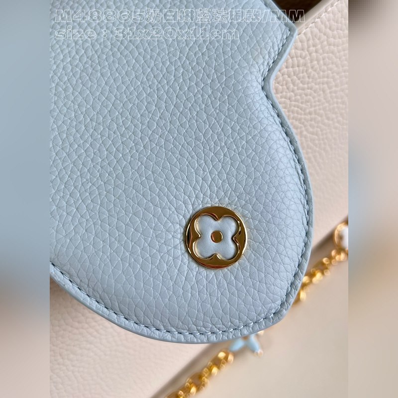 최고의 원작 [독점 리얼샷 M48865 크림색과 파란색 에나멜 모델/중형] 이 중간 크기의 코카인 백은 부드러운 파스텔 톤으로 채워져 클래식한 실루엣을 더욱 눈길을 끕니다. 섬세한 체인이 금속 모노그램 꽃을 연결합니다. 각각의 꽃은 수작업으로 성형 에나멜 처리 광택 처리를 거쳐 눈부신 광택을 띱니다. 플랩은 바깥쪽에 두거나 접어서 LV 로고를 드러낼 수 있습니다. 크기: 31.5x20x11cm